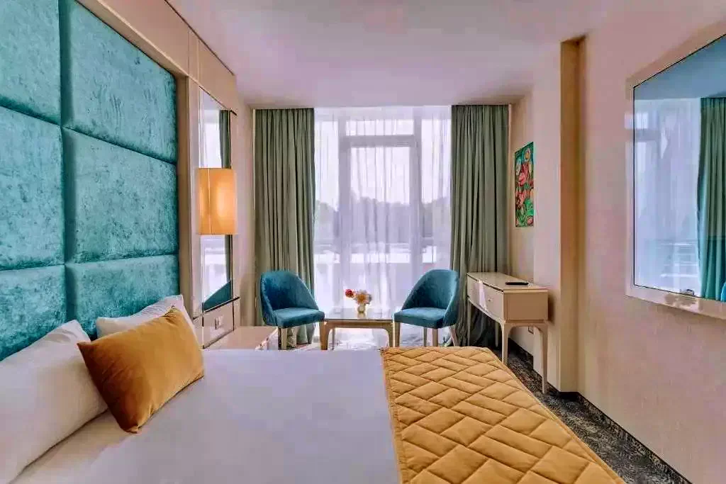 24 camere cu paturi matrimoniale, majoritatea cu balcoane sau terase