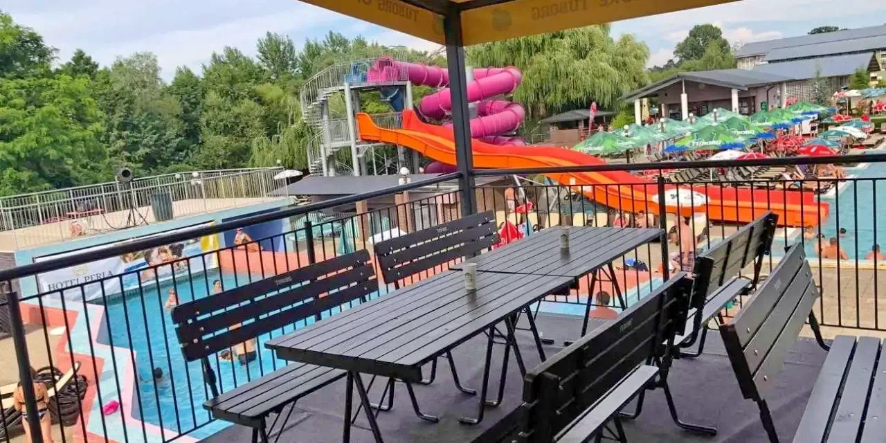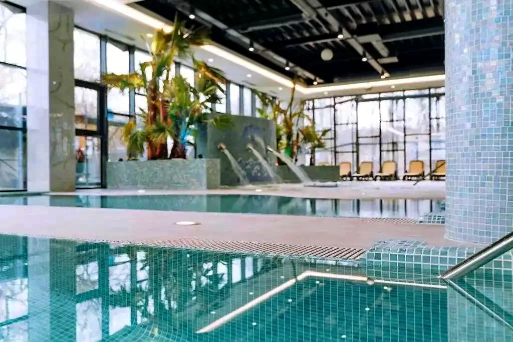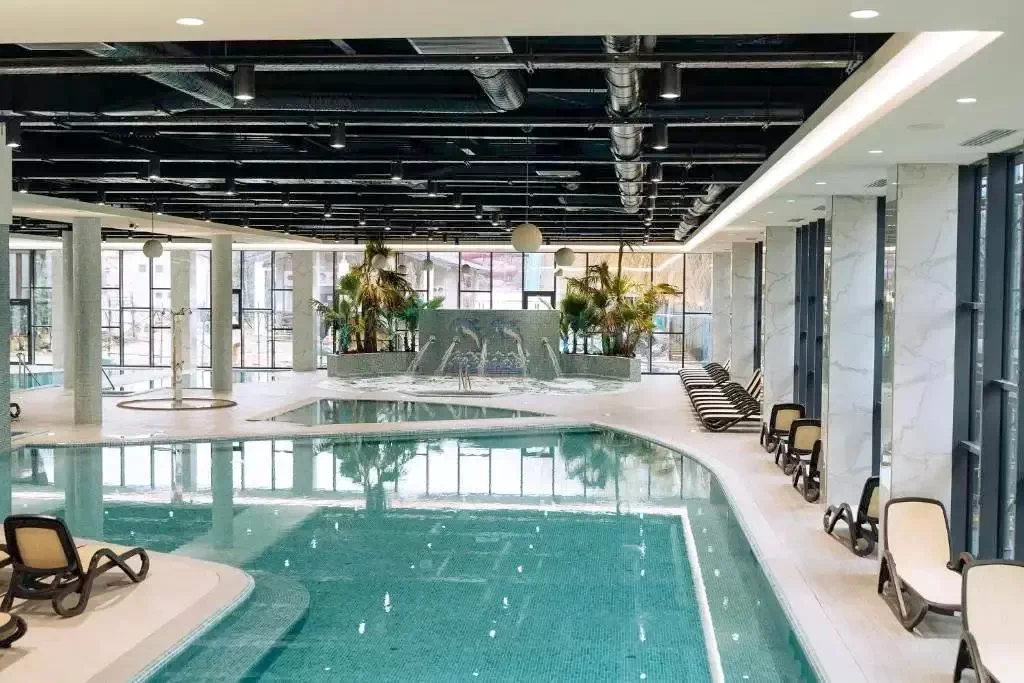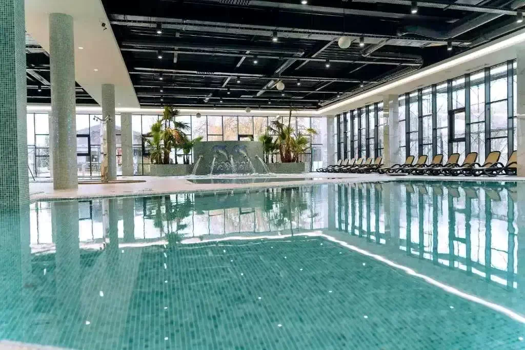 - Zona de Wellness a hotelului este dotată cu o piscină de 200 de locuri, 3 tobogane, o piscină cu valuri și o piscină pentru copii cu tobogan colorat.