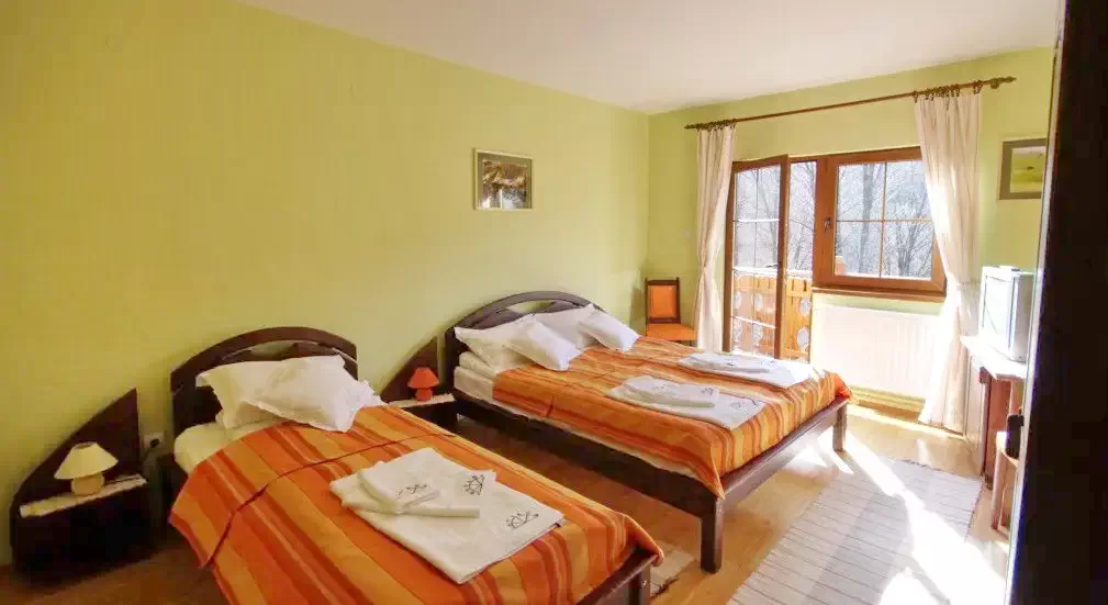 - Doua camere sunt dotate cu cate un pat matrimonial, iar cele două camere situate la etaj au câte un pat simplu lângă patul matrimonial.