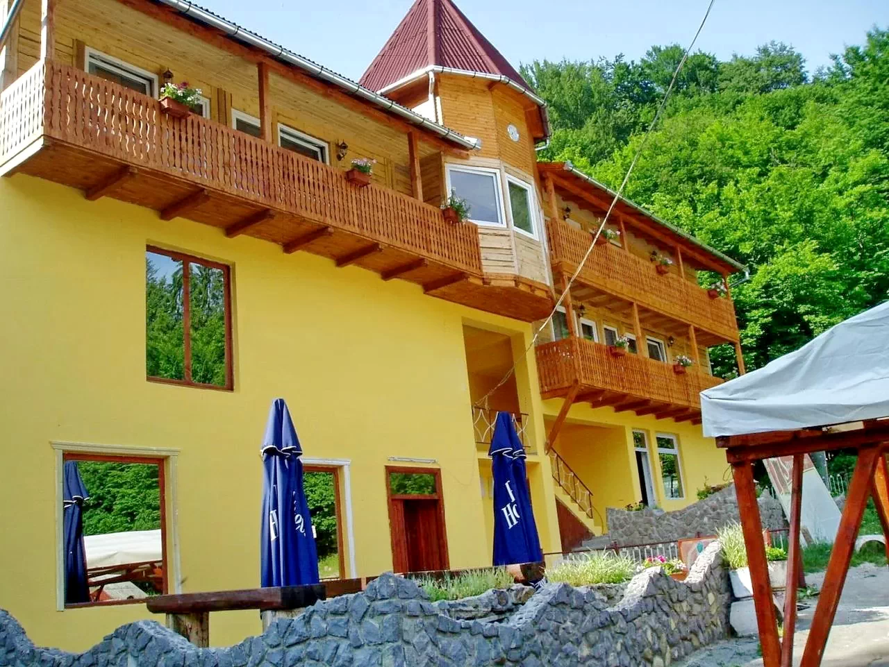 - Hotelul poate oferi cazare și masa pentru o suta de persoane împreuna cu pensiunea partenera aflata la o distanță de 40 m.