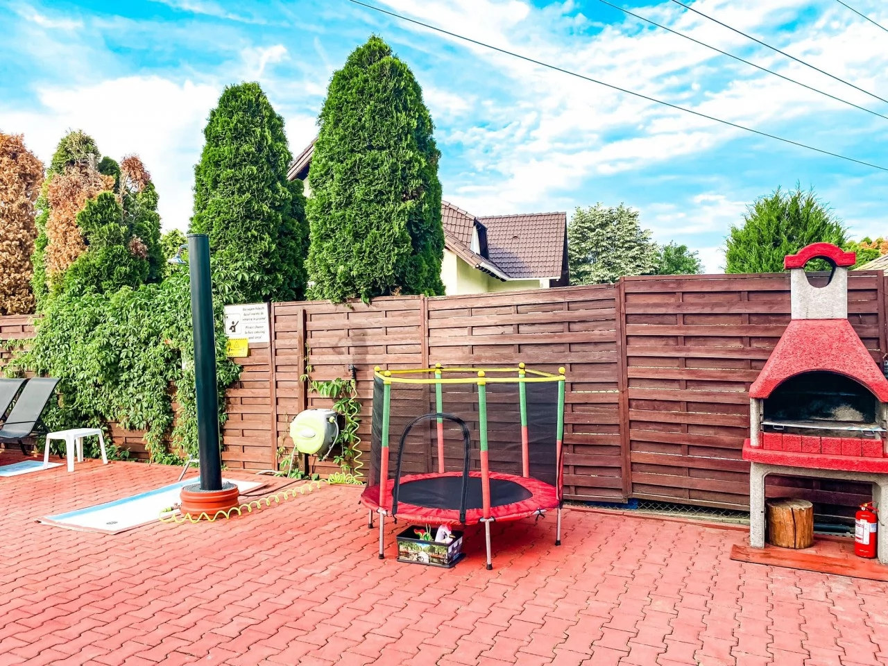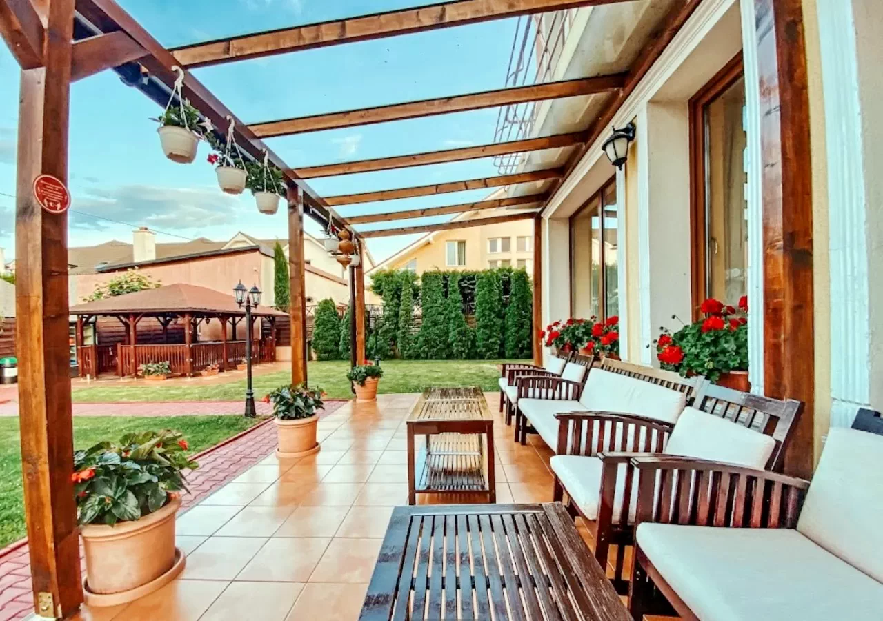 - Oferă oaspeților terasa mare, gradina si curte cu mult spațiu verde, foișor, cuptor, facilități de grătar, teren de joaca pentru copii, trambulina si parcare gratuita in curte.