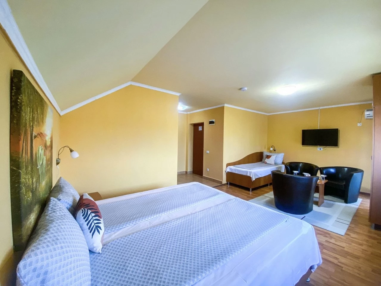 - Camerele sunt dotate cu televizoare Lcd aparate de aer conditionat, sunt mobilate cu mobilier nou si modern ce va ofera un confort ridicat.