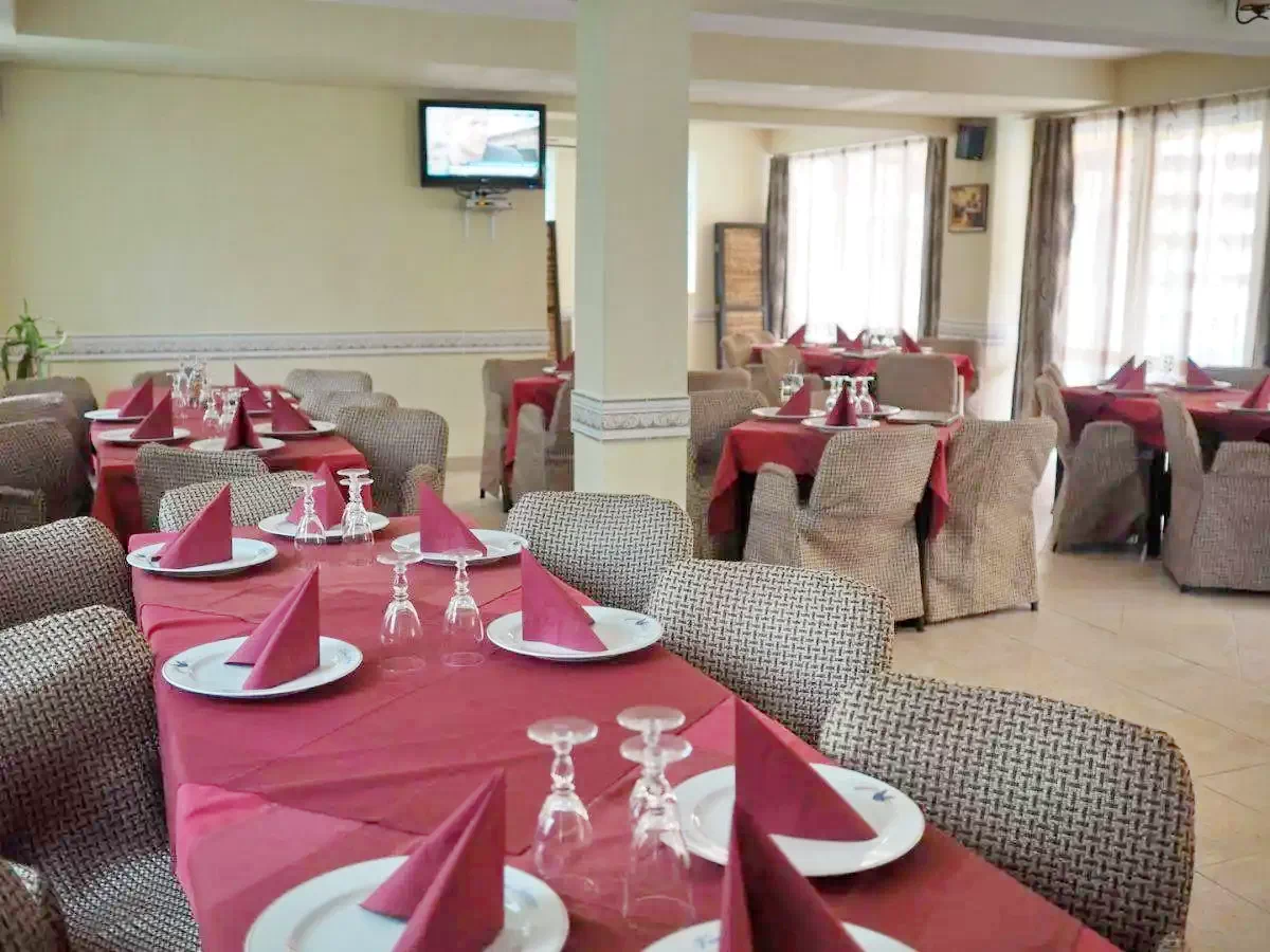 - Restaurantul elegant împreuna cu terasa (150 locuri), oferă masa “a la carte” si ambianta adorata aproape de natura.