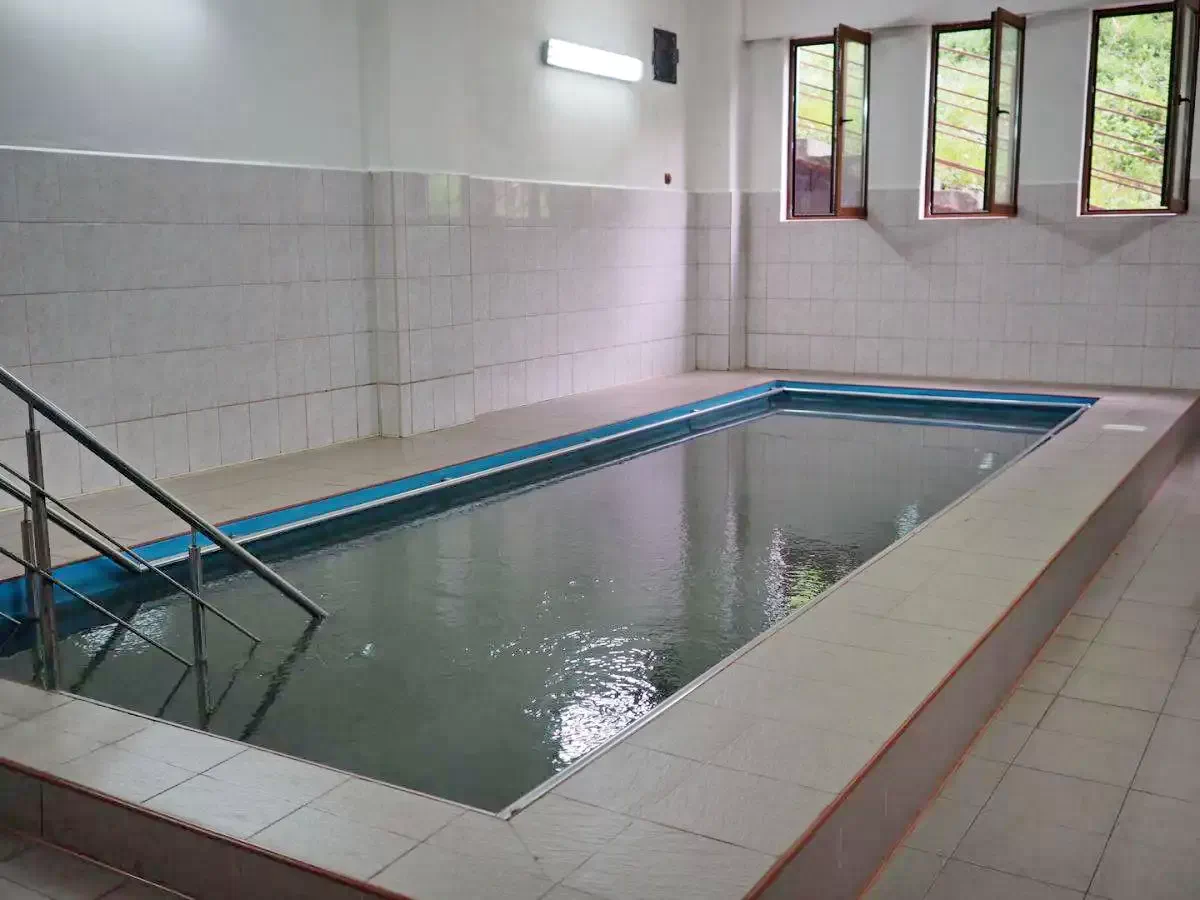 - Dispune de o piscina interioara si 2 piscine semi olimpice exterioare cu tobogan si apa termosulfuroasa pentru adulți, precum si o piscina exterioara cu tobogan pentru copii,