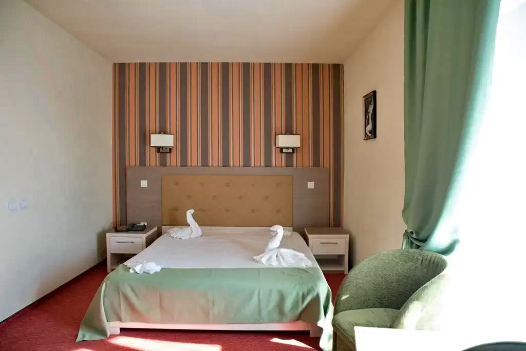 - Camerele spaţioase de la Hotel Resort sunt decorate în nuanţe de roşu, crem şi maro şi beneficiază de mobilier modern.