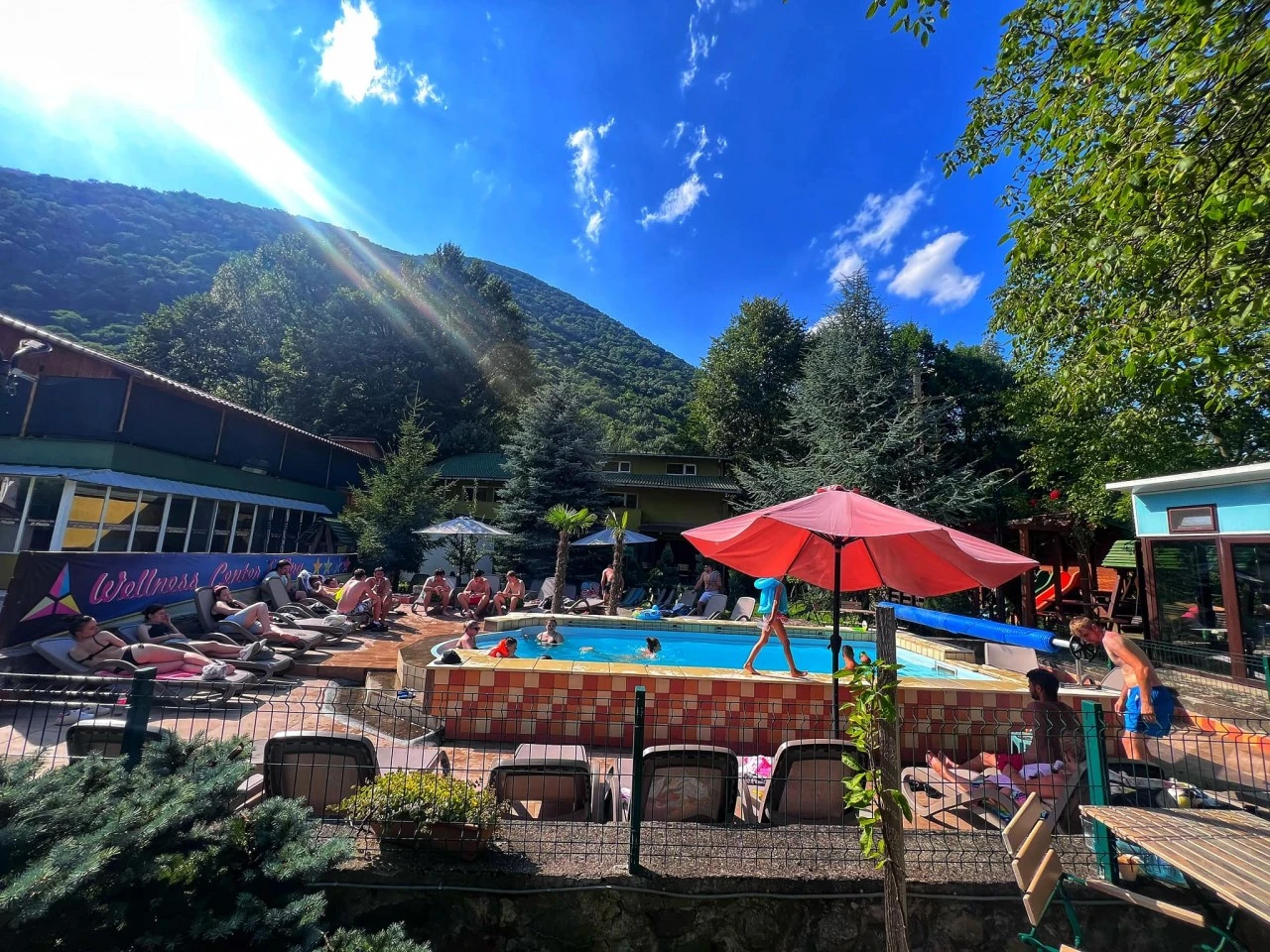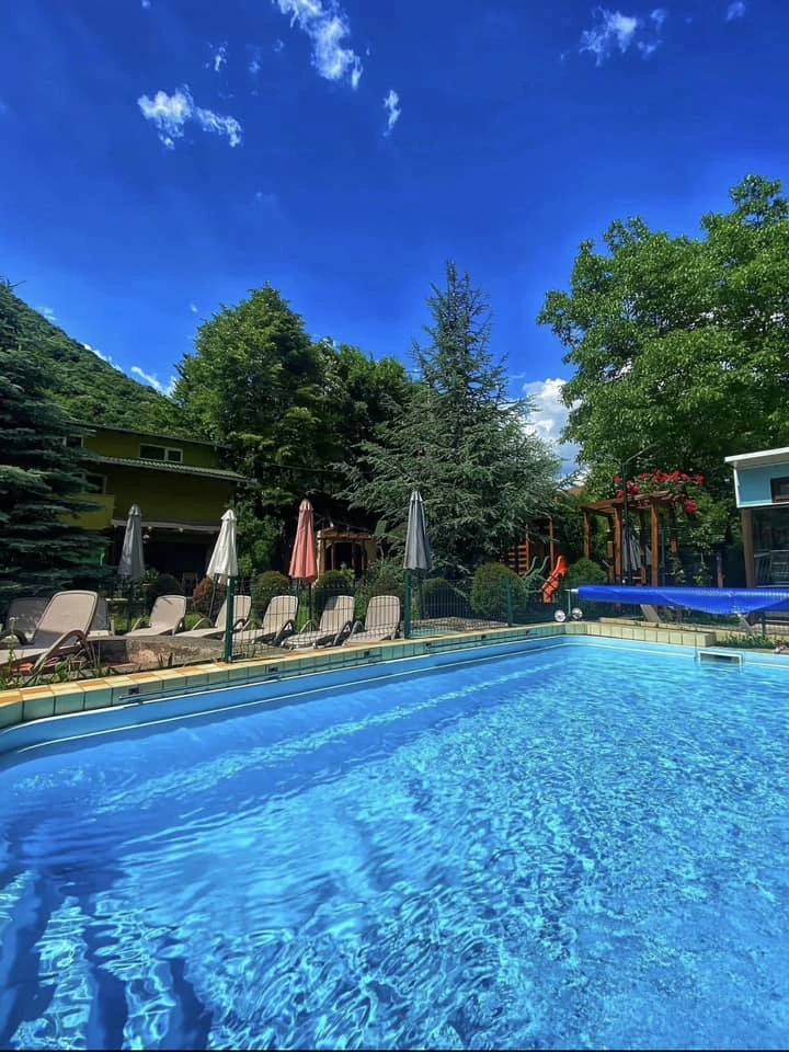 • Două piscine: una exterioară sezonieră și una interioară cu apă termală și sulfuroasă (momentan în renovare), reîmprospătate zilnic