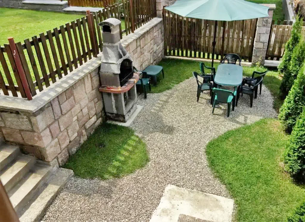 - Curtea sa cu iarbă verde este dotată pentru programe la aer liber (cu grătar) și oferă parcare în fața vilei.