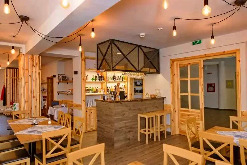 Restaurant cu 60 de locuri cu preparate tradiționale și internaționale.