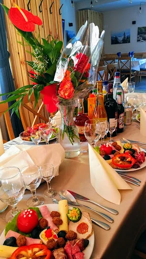 - Restaurantul pensiunii, cu o capacitate de 60 de locuri, servește preparate delicioase, combinând arome tradiționale și internaționale, pregătite din ingrediente proaspete și de calitate.