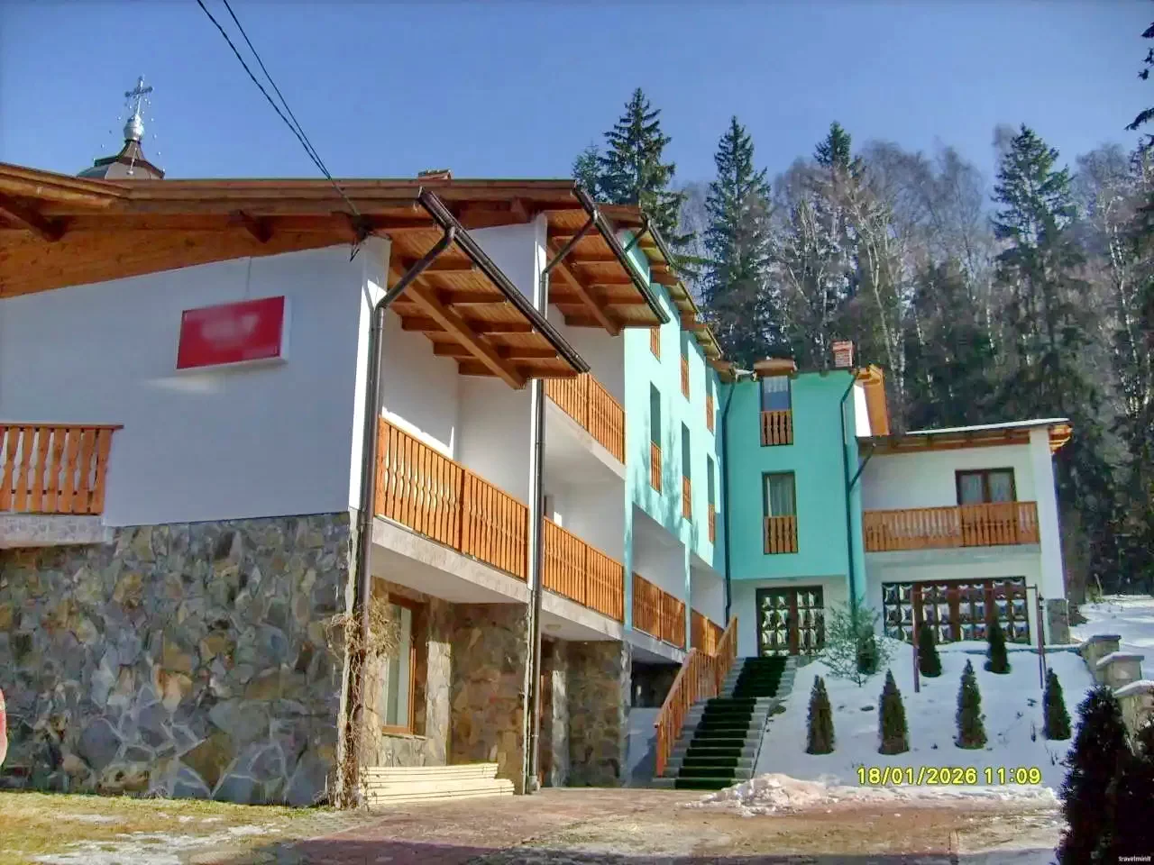 Este situata in zona centrala a stațiunii intr-un mediu liniștit si relaxant in apropierea bisericii ortodoxe.