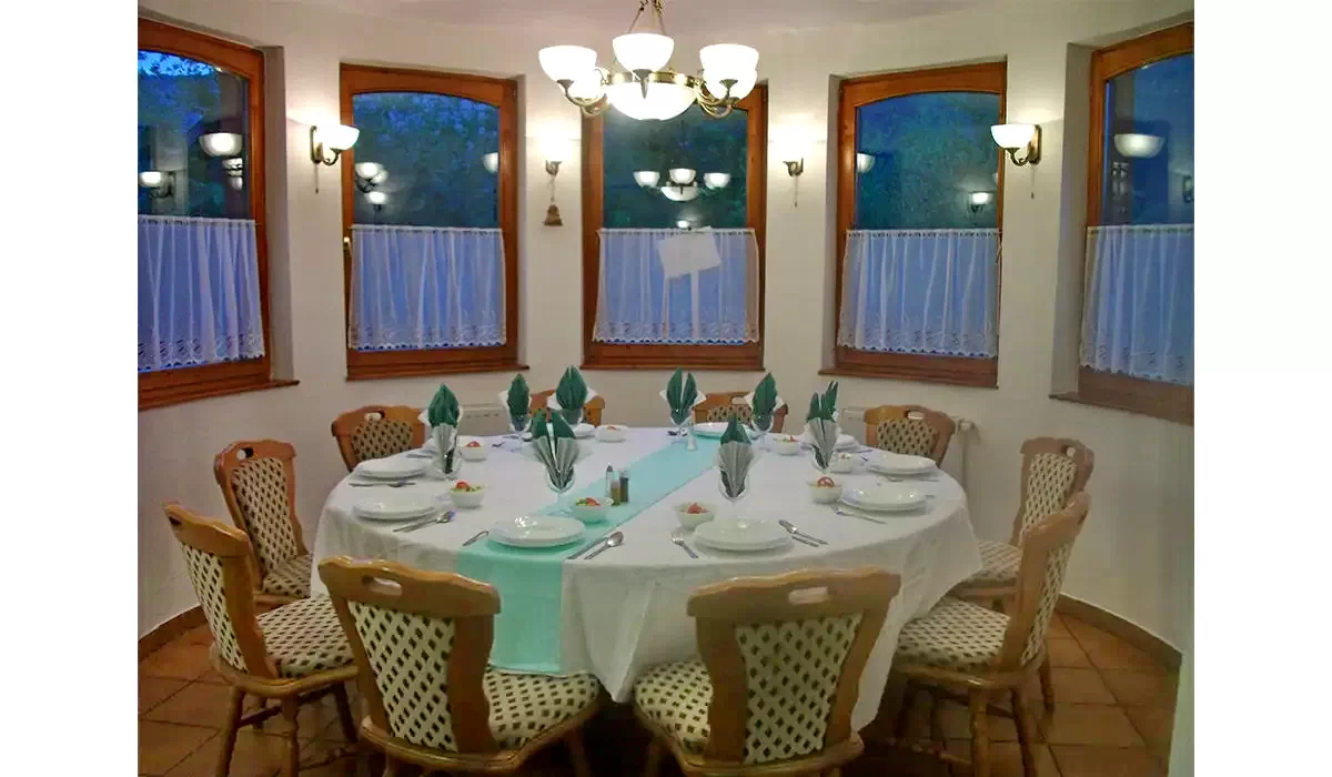 - Fiecare cameră este dotată cu baie proprie cu duș, uscător de păr, televizor cu cablu și internet Wi-Fi. Majoritatea camerelor dispun de balcon, de unde se deschide o priveliște superbă spre pădure.