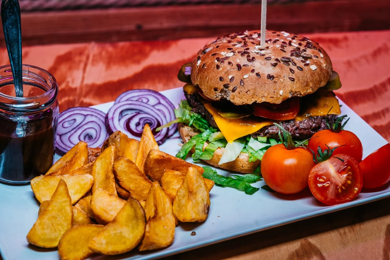 - Opţiunea 1: Coaste de porc la cuptor, servite cu cartofi ţărăneşti şi sos de barbecue.