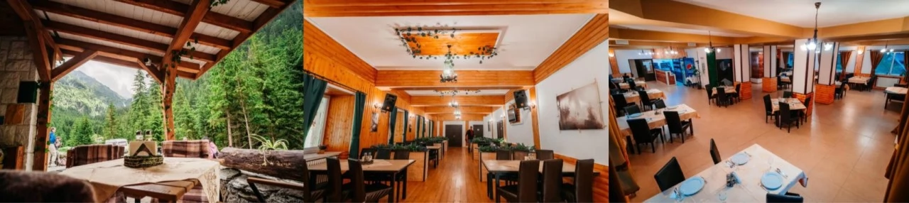 - Restaurantele cabanei dispun de peste 100 de locuri la mese în interior şi 60 de locuri la mese pe terasele cabanei. În cazul unor evenimente se pot amenaja în interior peste 150 de locuri la mese.