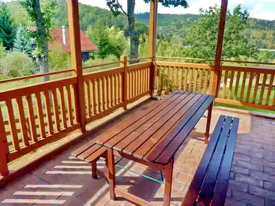 Cazare Baraj Zetea Cabană | Bucătărie utilată, sufragerie, living, șemineu și încălzire centrală, curte de 1800 m² cu foișor și terasă, grătar, leagăn, parcare | 300 m Lacul de acumulare Baraj Zetea, 9 km Pârtia de schi Vărșag, 55 km Salina Praid