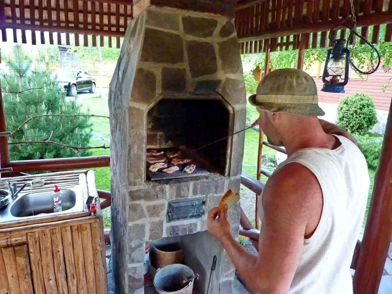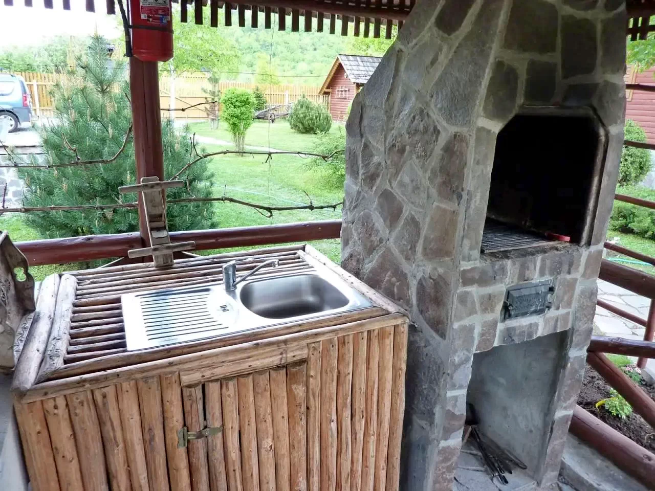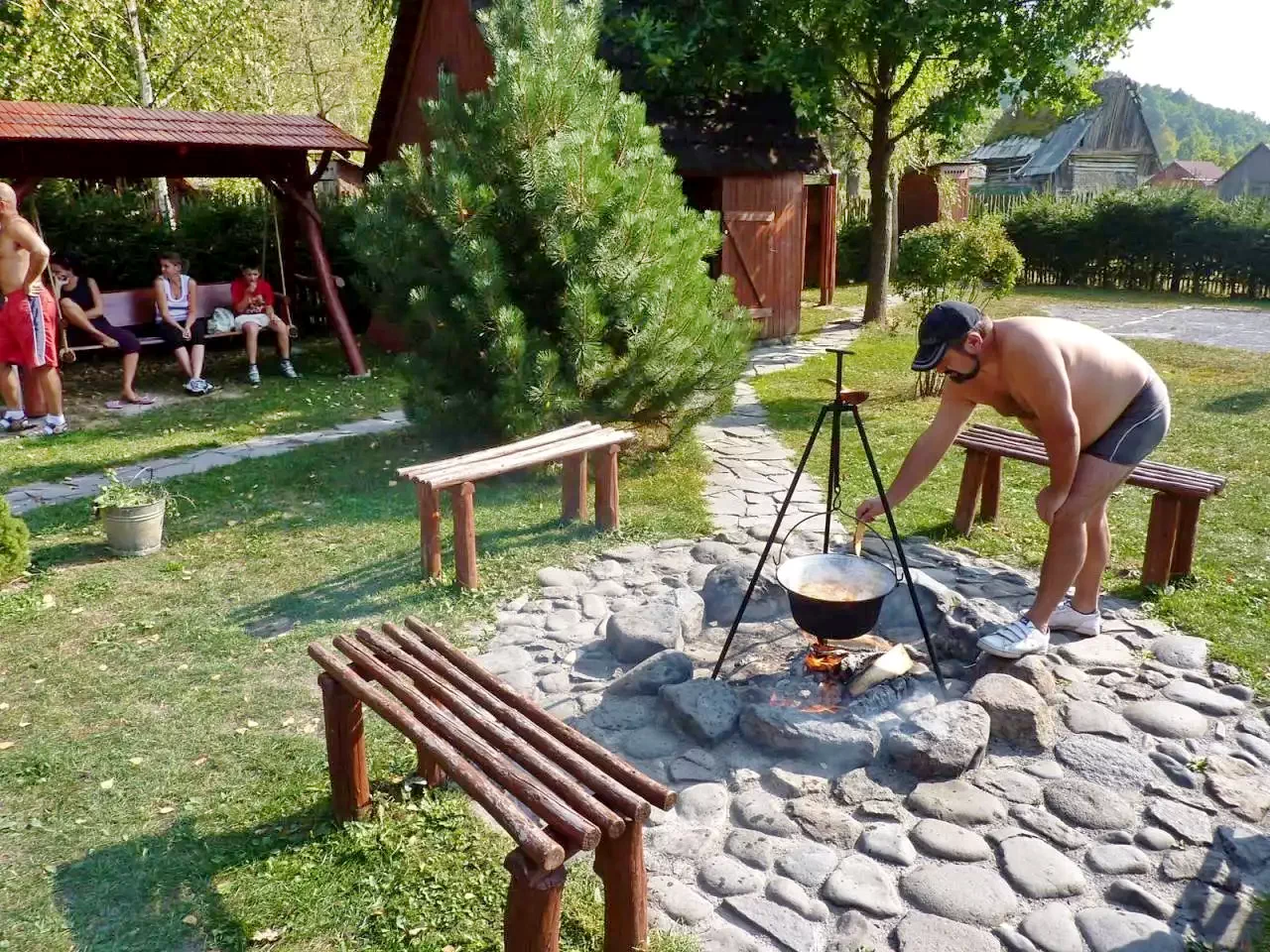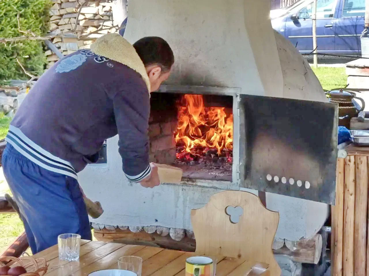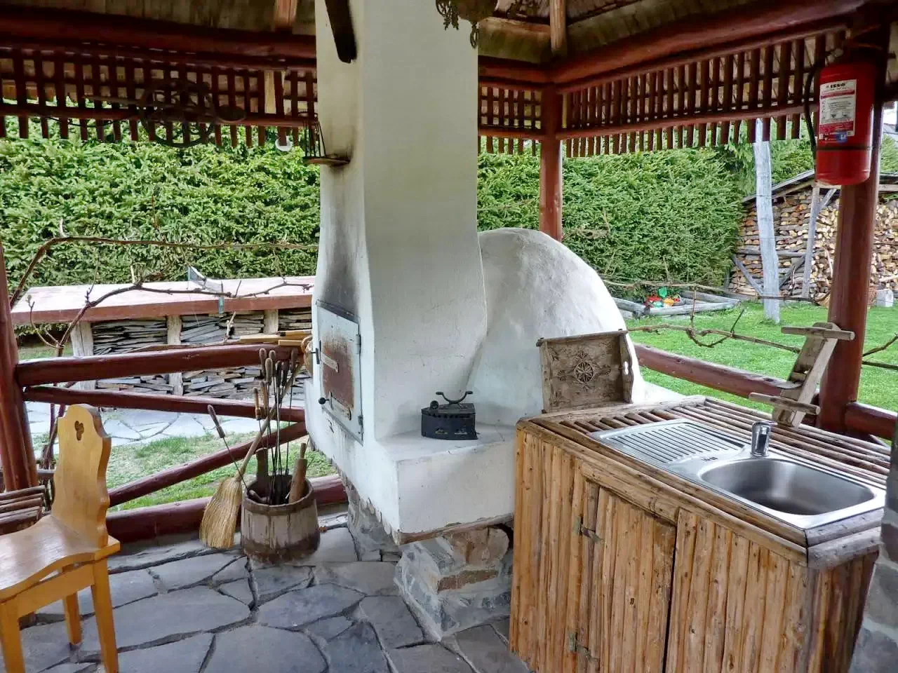- Cuptor pentru grătar, cuptor de pâine, ceaun, tavă pentru disc, loc de foc.