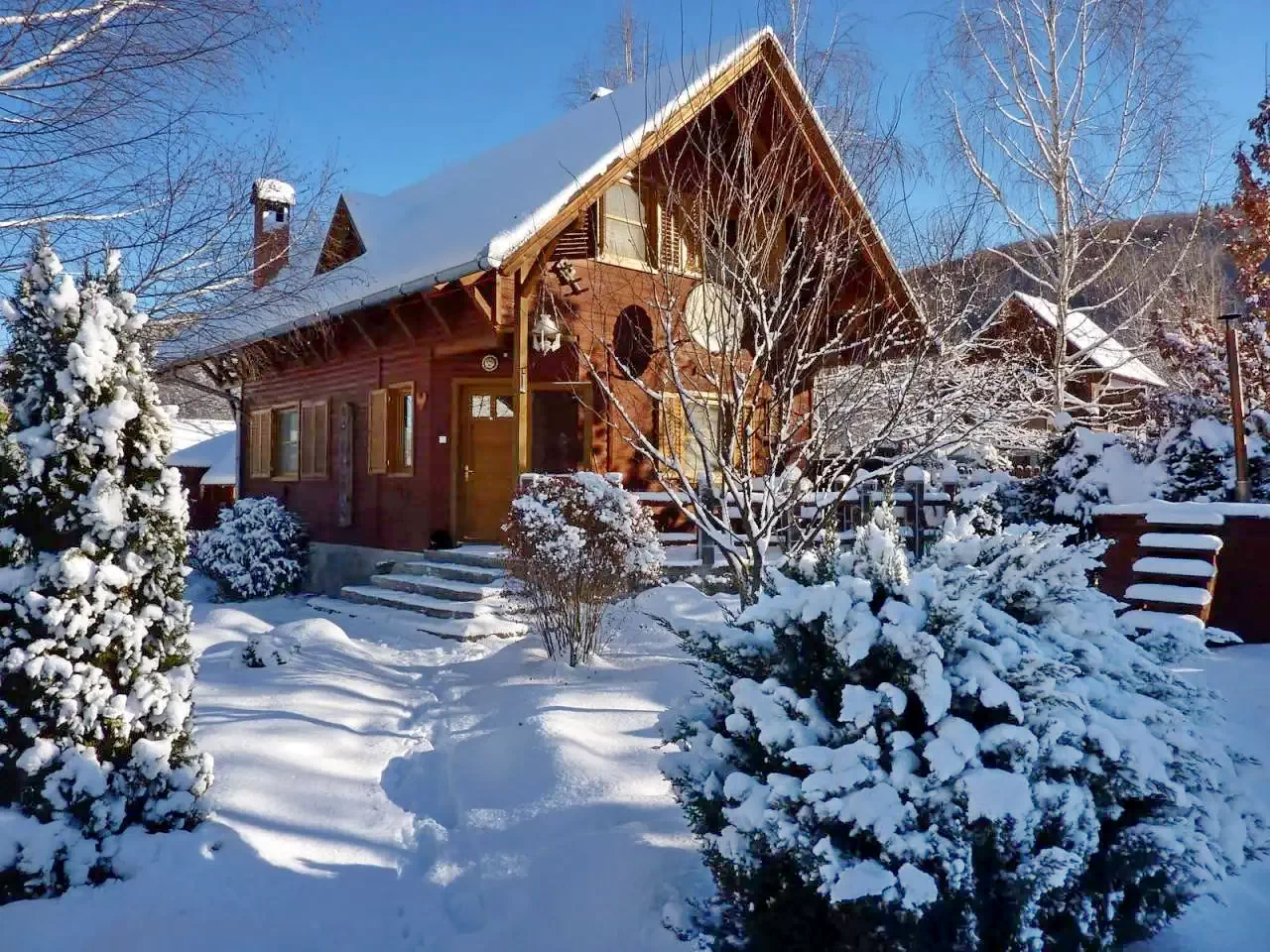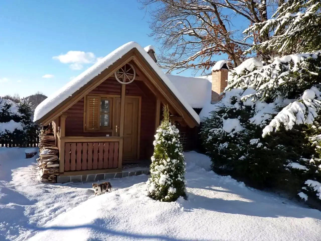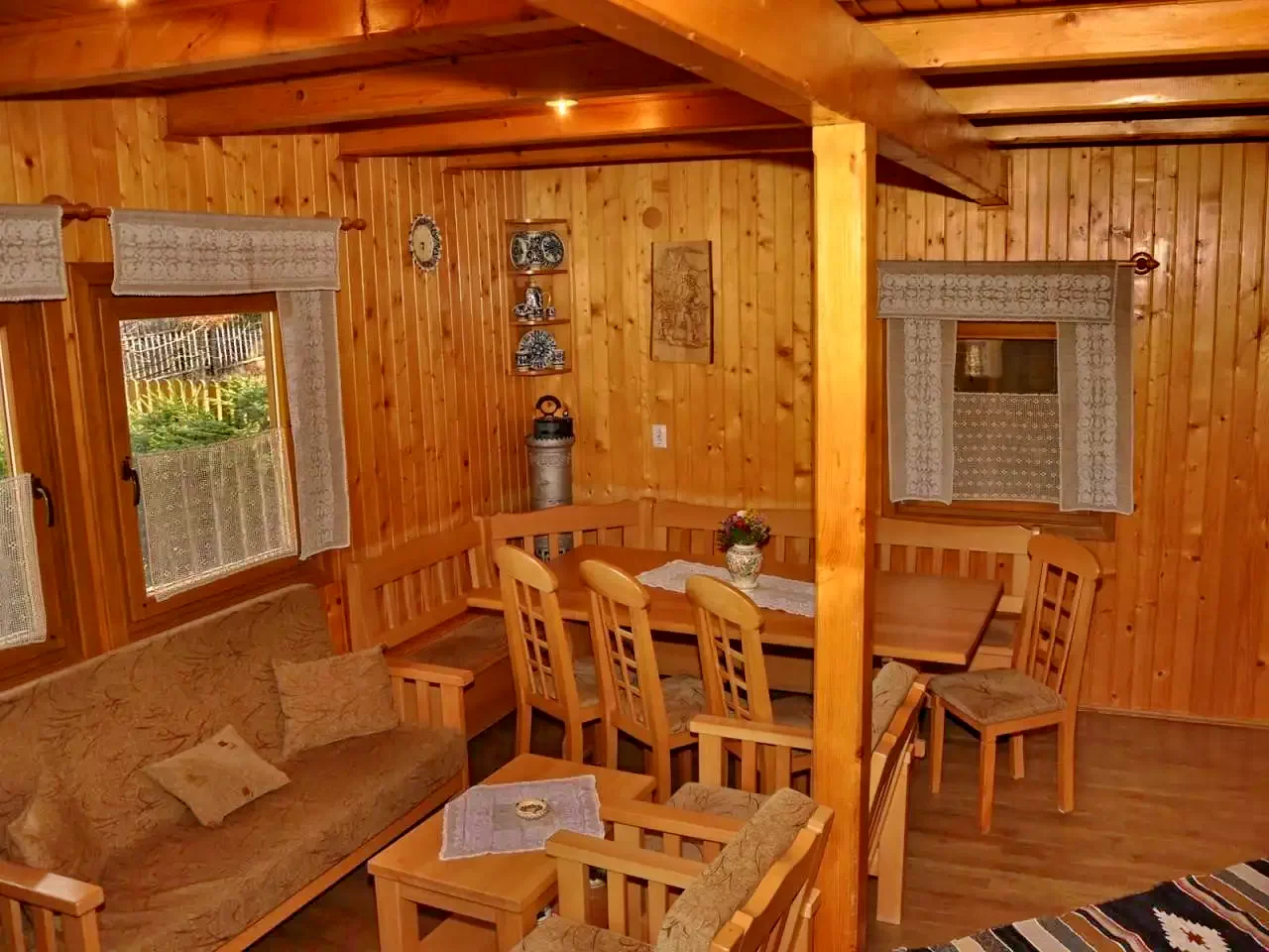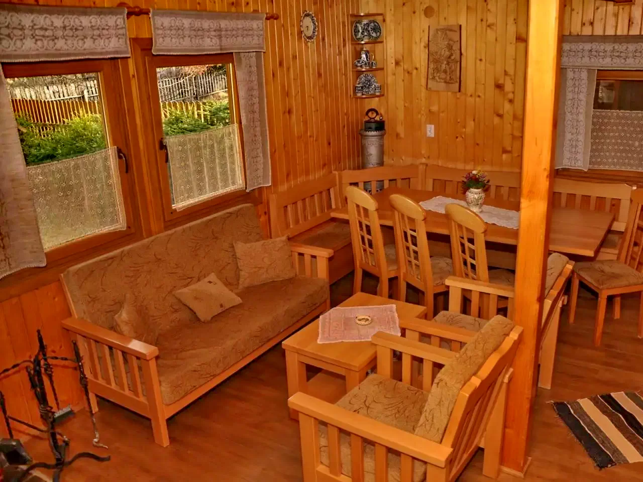 - Căsuțele, aflate la 20 de metri de clădirea principală, sunt unități independente, fiecare cu baie proprie și încălzire. Cabana este închiriată exclusiv unui singur grup, oferind acces deplin la întregul complex.
