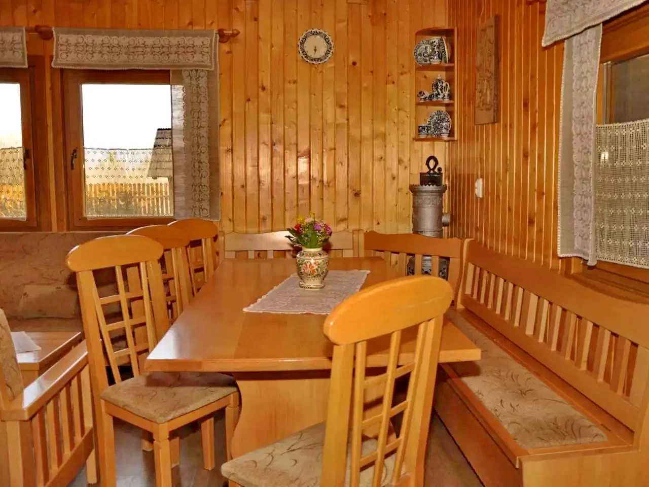 - Încălzire: sobă de teracotă, sobă din fontă, radiatoare electrice și panouri infraroșu.