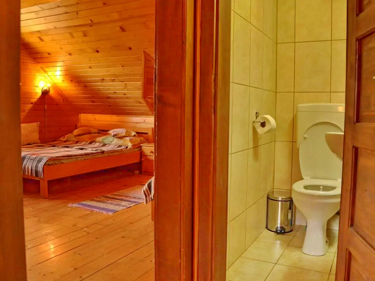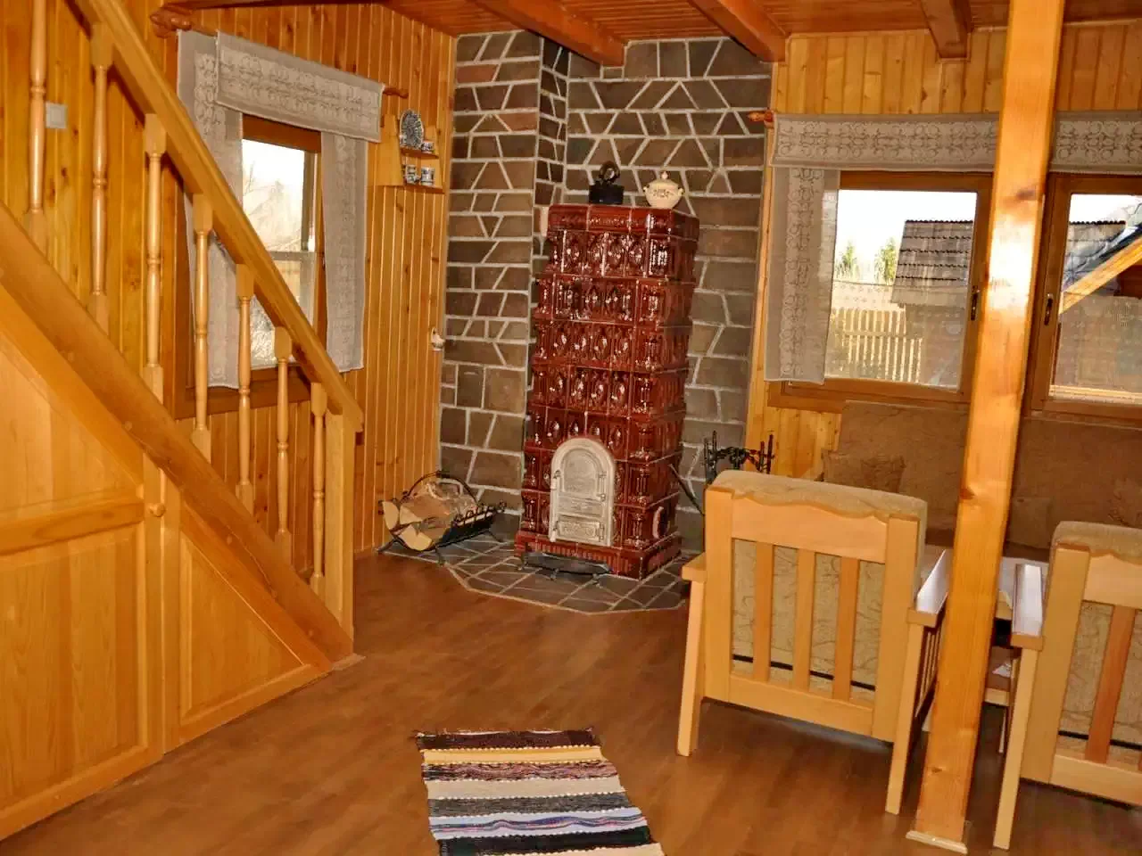 - Etaj: 1 cameră pentru 3 persoane (1 pat single și 1 pat dublu, saltea suplimentară), 1 cameră pentru 2 persoane (pat dublu, saltea suplimentară), toaletă separată pe hol.