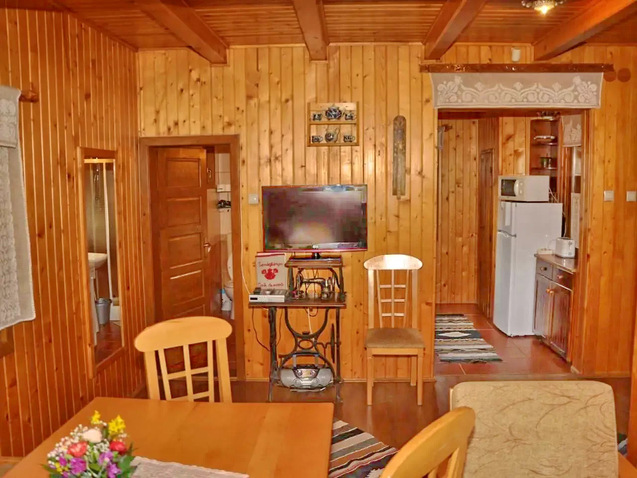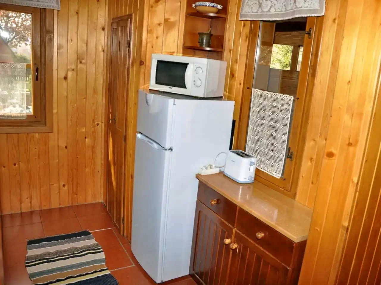 - Cabana pune la dispoziție o bucătărie complet echipată, dotată cu toate ustensilele necesare: mașină de spălat vase, frigider, cuptor cu microunde, prăjitor de pâine, filtru de cafea, oale și tacâmuri, ideală pentru oaspeții care preferă să gătească singuri.
