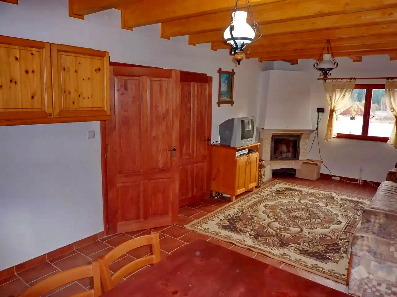 - Încălzirea este asigurată de un șemineu și încălzire centrală cu lemne, apa caldă de un sistem pe lemne.