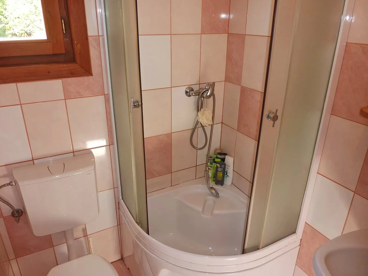 Living-sala de mese (cu canapea extensibilă pentru 2 persoane), bucătărie, baie (duș, WC, chiuvetă), cameră cu pat dublu.