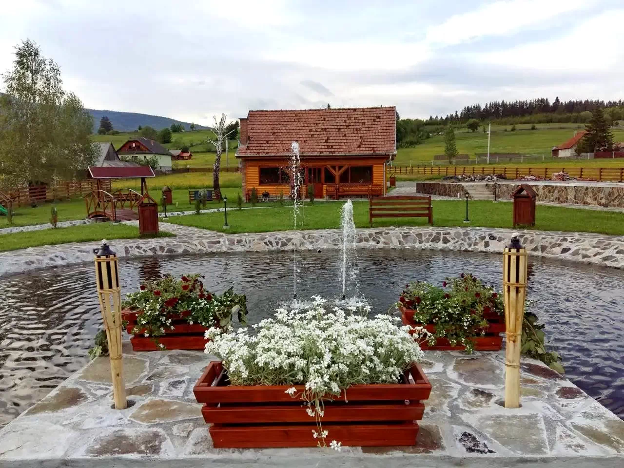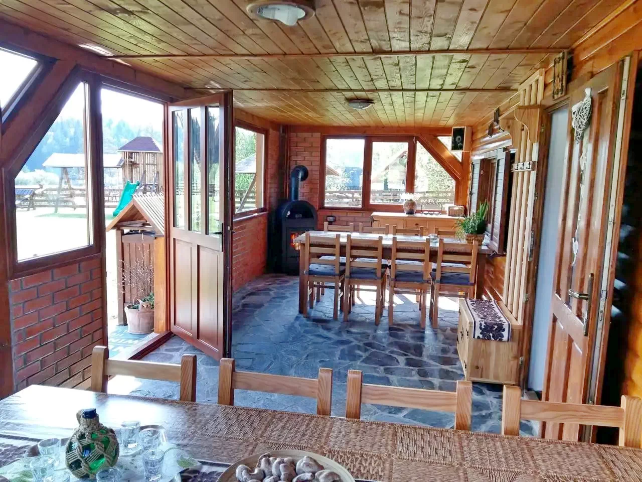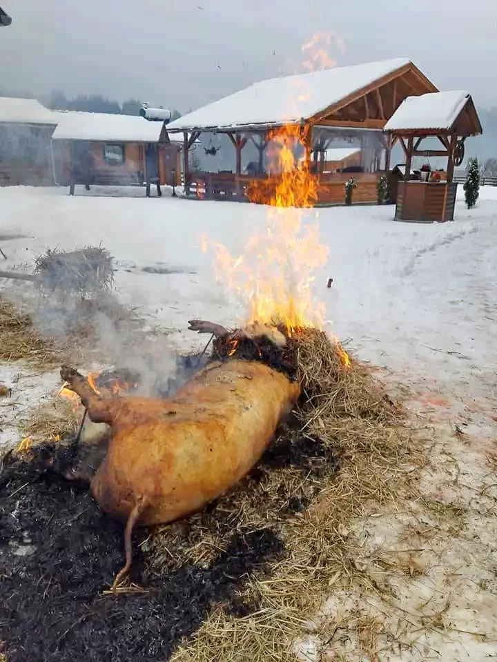 - Pentru gătit în aer liber sunt disponibile grătar-cuptor, cuptor tradițional pentru pâine, loc de foc, ceaun și disc.