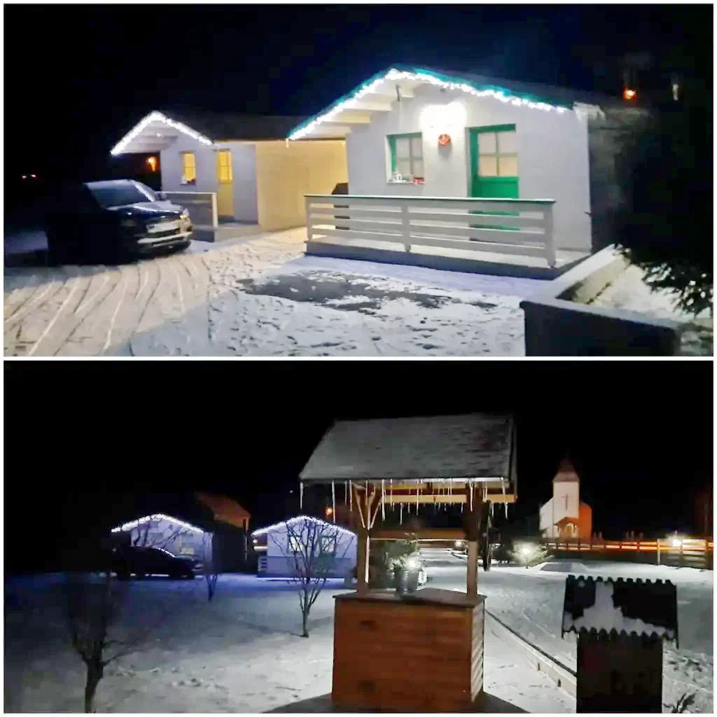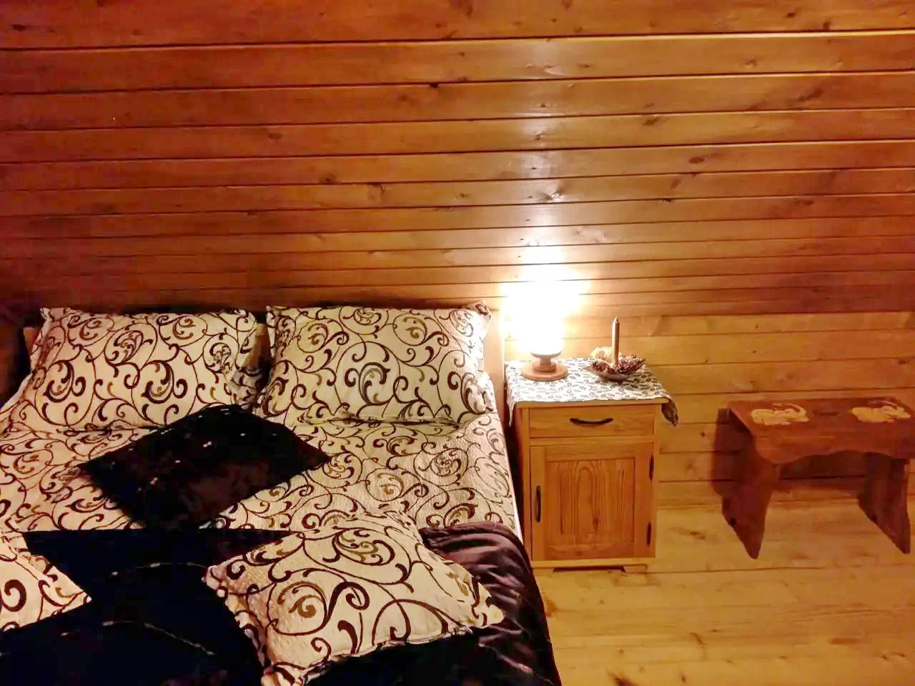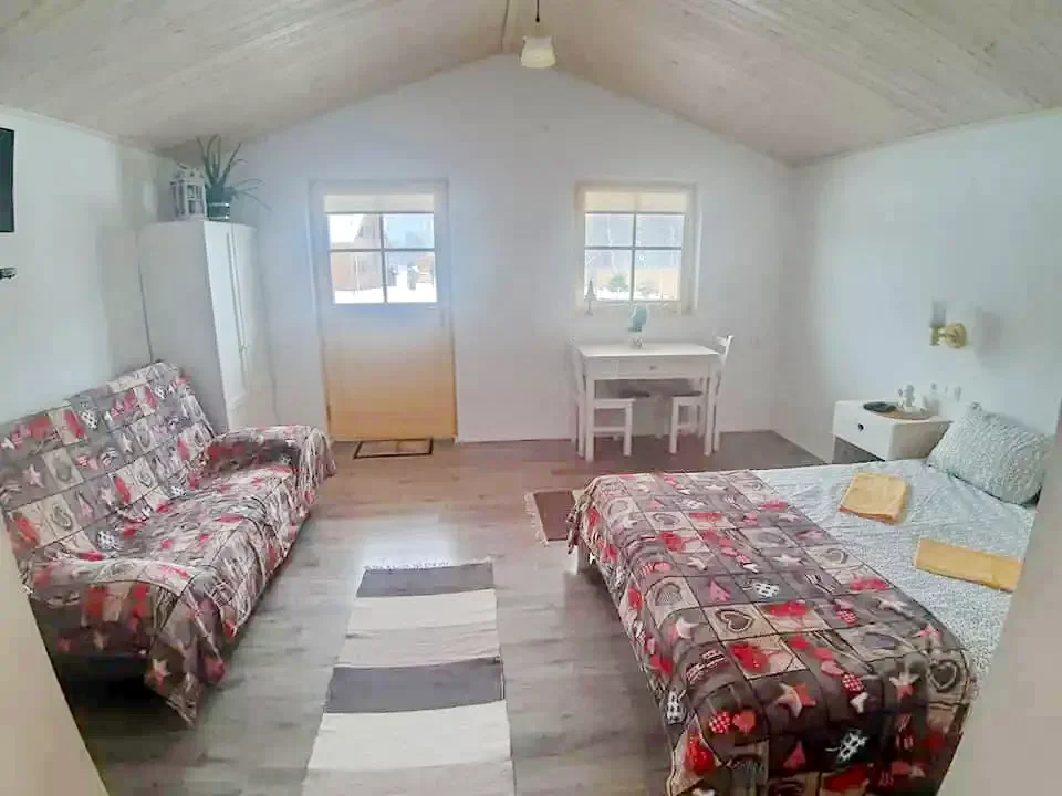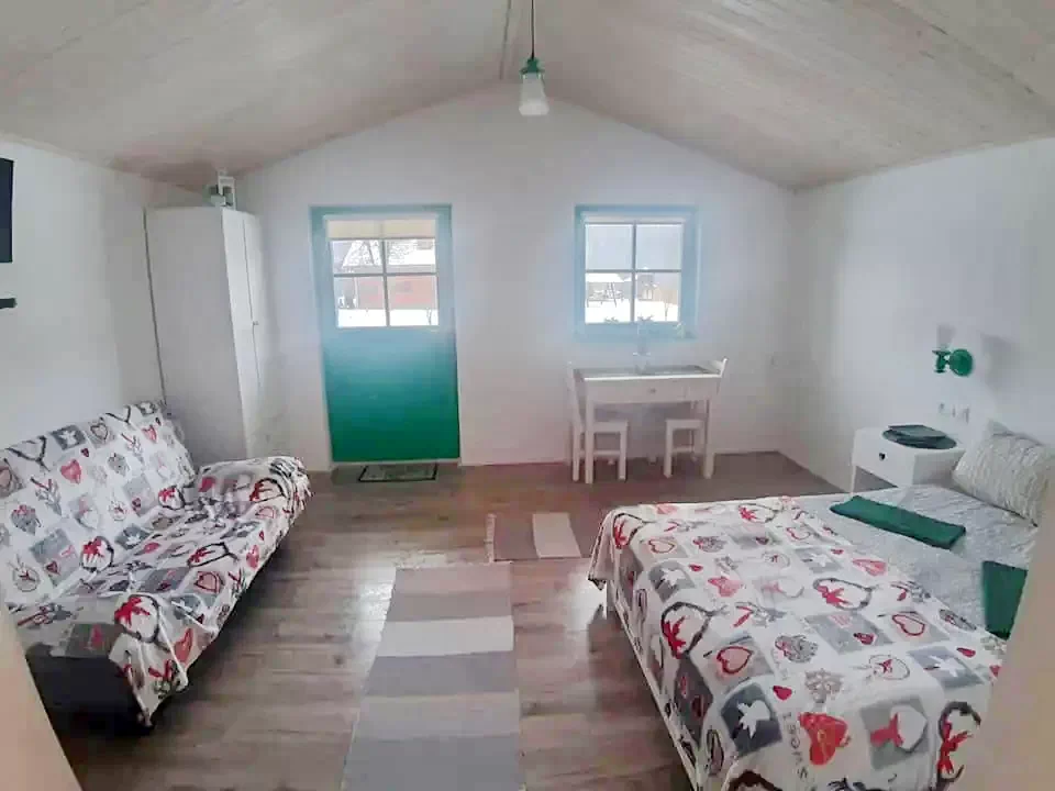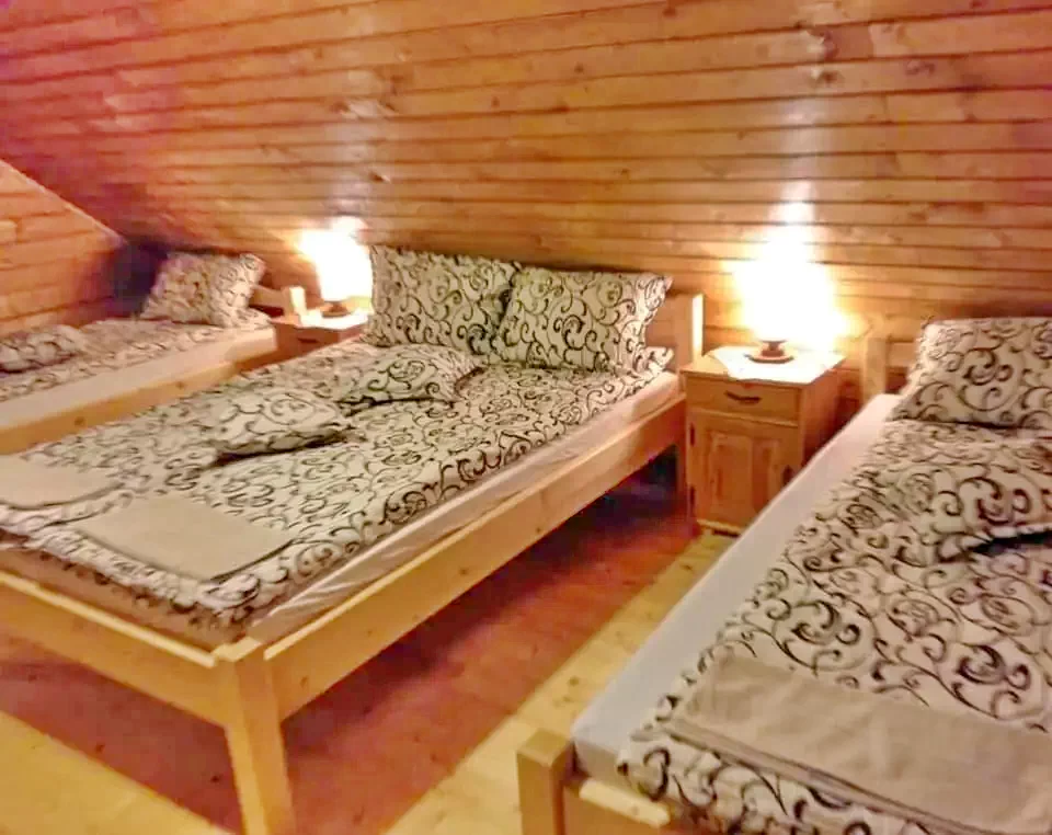 Fiecare: 1 pat dublu + 1 canapea extensibilă (4 persoane, total 12 persoane) Cabana dispune de cinci băi (una în cabana principală, una în curte lângă wellness cu duș dublu, 2 WC-uri și chiuvete, trei în cămăruțe), lenjerie de pat de calitate și prosoape de mâini.