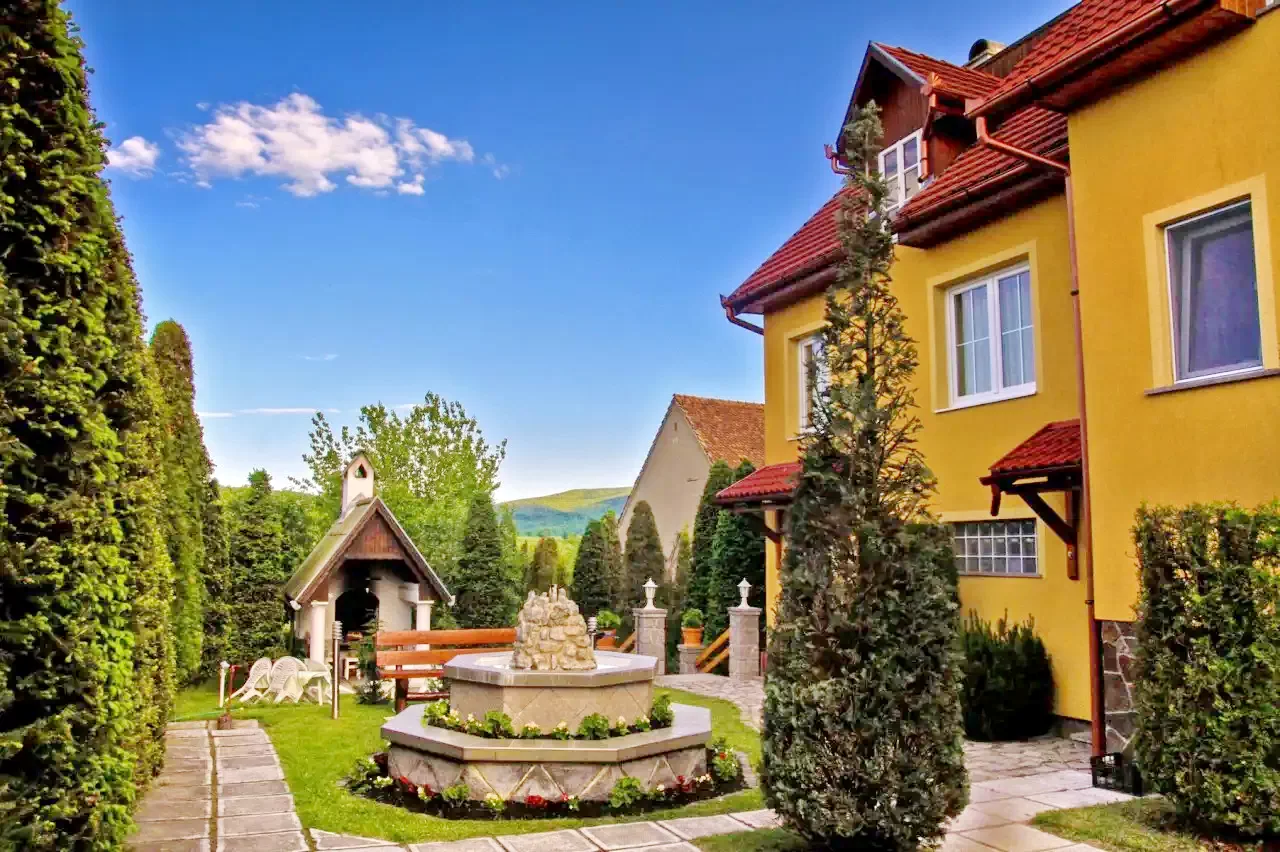 - Curtea pensiunii, cu o suprafață generoasă de 2000 de metri pătrați, oferă liniște și o ambianță de relaxare în mijlocul naturii.