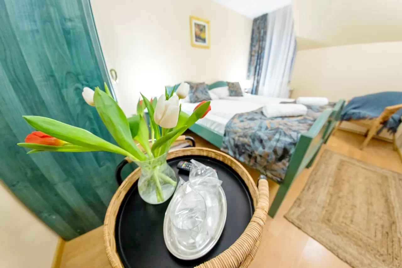 - Oaspeții pot alege între diverse tipuri de camere, inclusiv 4 camere standard cu două paturi, 2 camere deluxe cu două paturi, o cameră cu trei paturi și un apartament pentru cinci persoane.