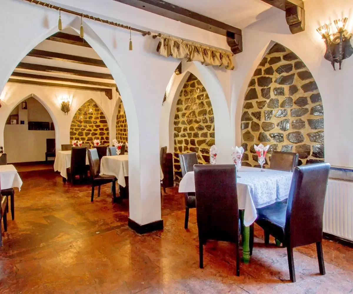 - Sala de mese de 200 locuri in prelungirea caruia se afla o terasa acoperita cu o capacitate de 100 de persoane poate fi locul de intalnire si de relexare al oaspetilor bineveniti.