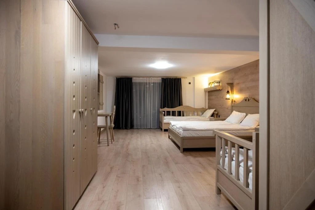 - Cameră Silence Trails: 4-5 persoane (2 paturi single și 1 pat dublu mare, 30 m²)