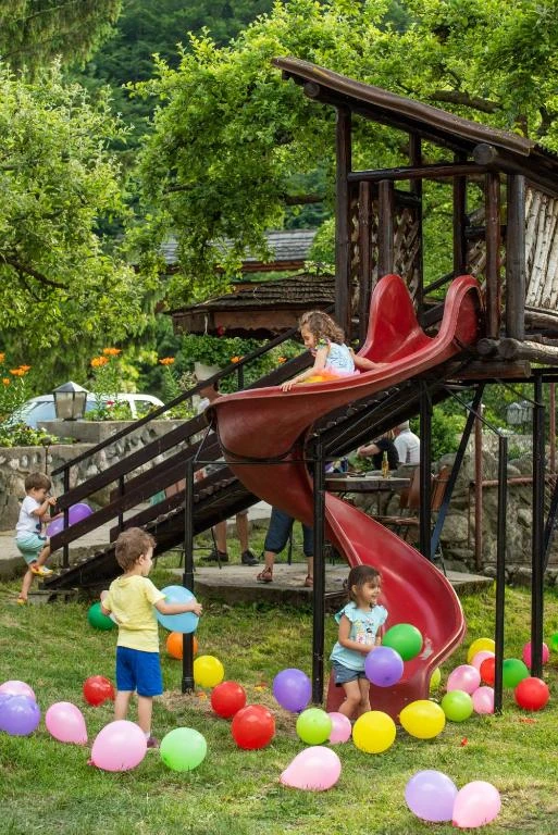 - Loc de joacă (topogan, leagăn, groapă de nisip)