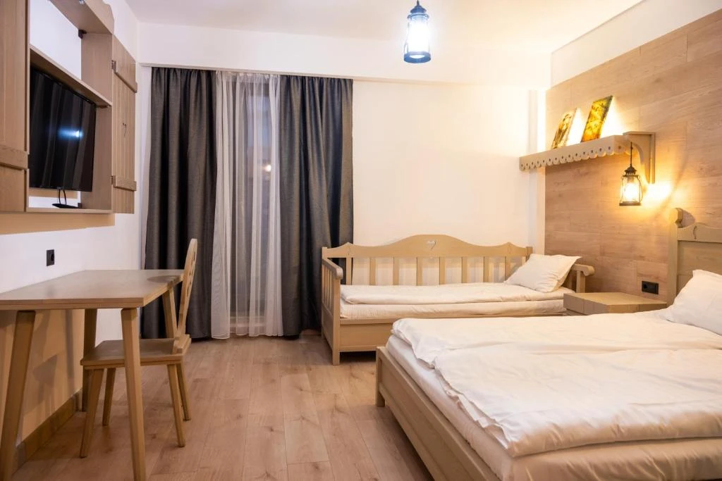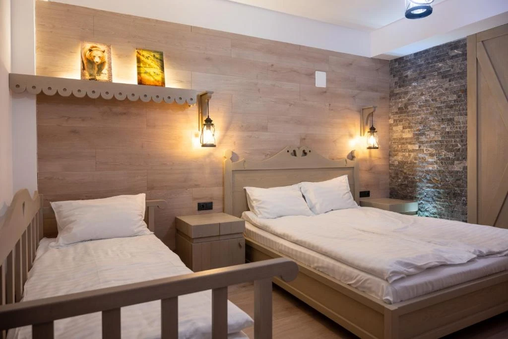 - Cameră Silence Trails: 4-5 persoane (2 paturi single și 1 pat dublu mare, 30 m²)