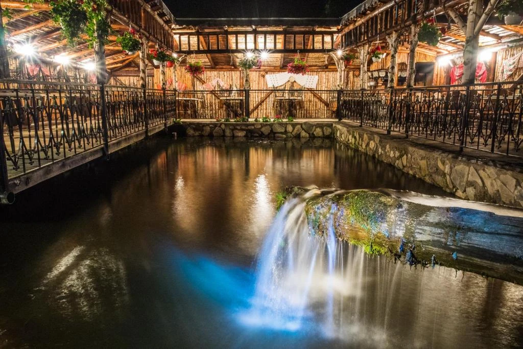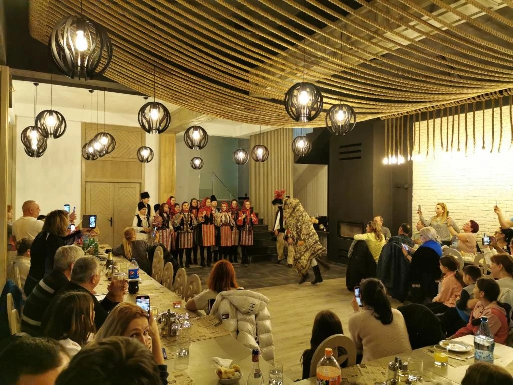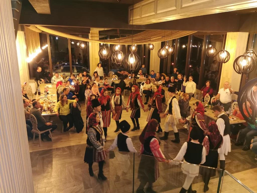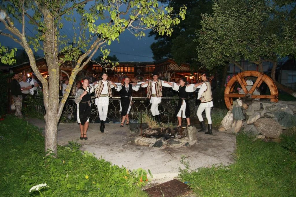 - Primire tradițională (pălinca, brânză, colac, aperitiv cu brânzeturi și păstrăv la cuptor, personal în costume naționale)