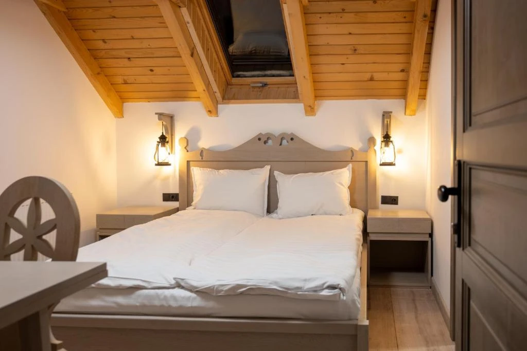 - Camerele sunt spațioase, luminoase și elegante, oferind vederi superbe către munți, un refugiu ideal pentru odihnă și relaxare.