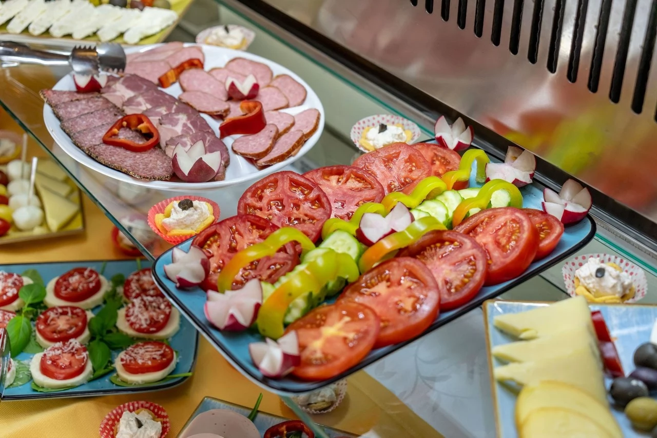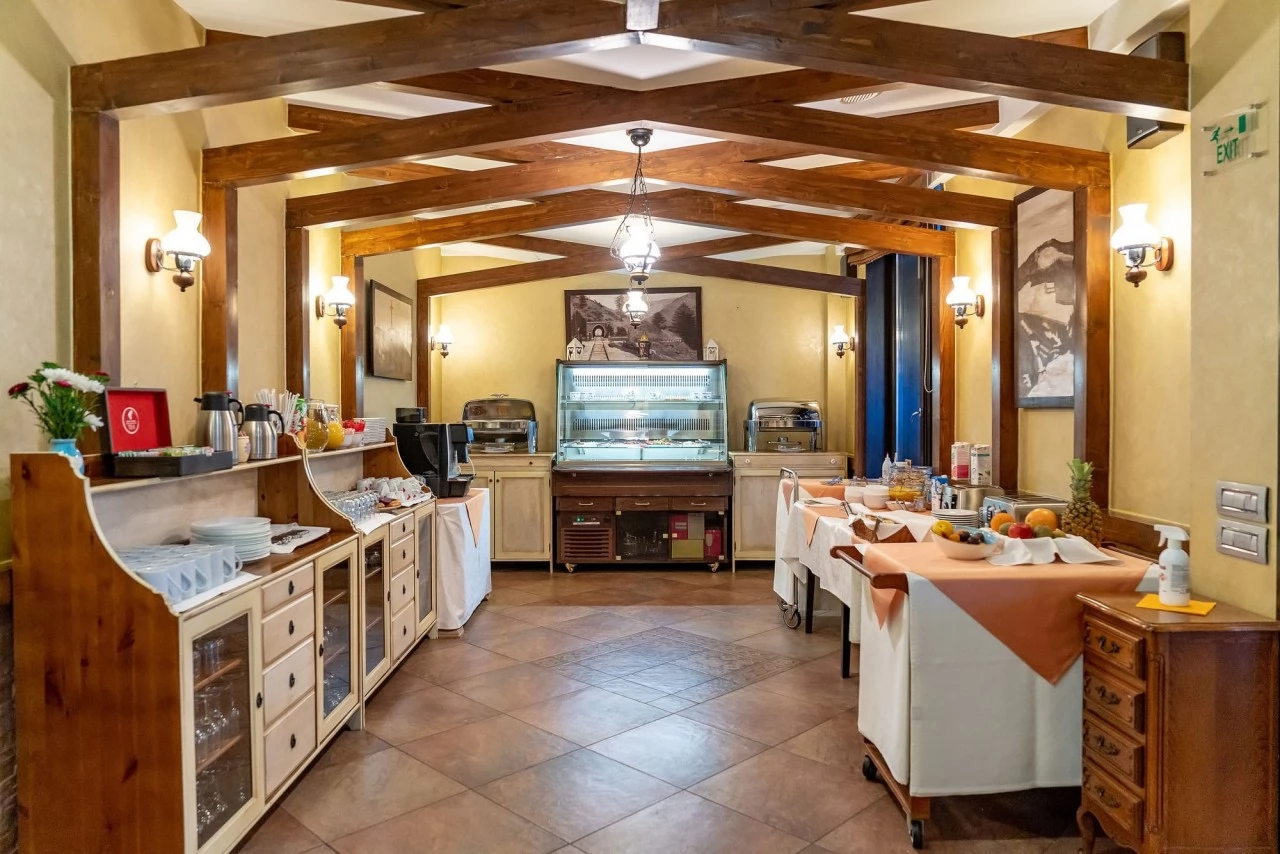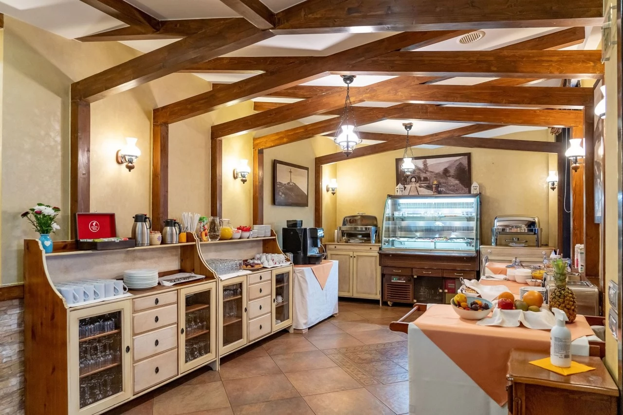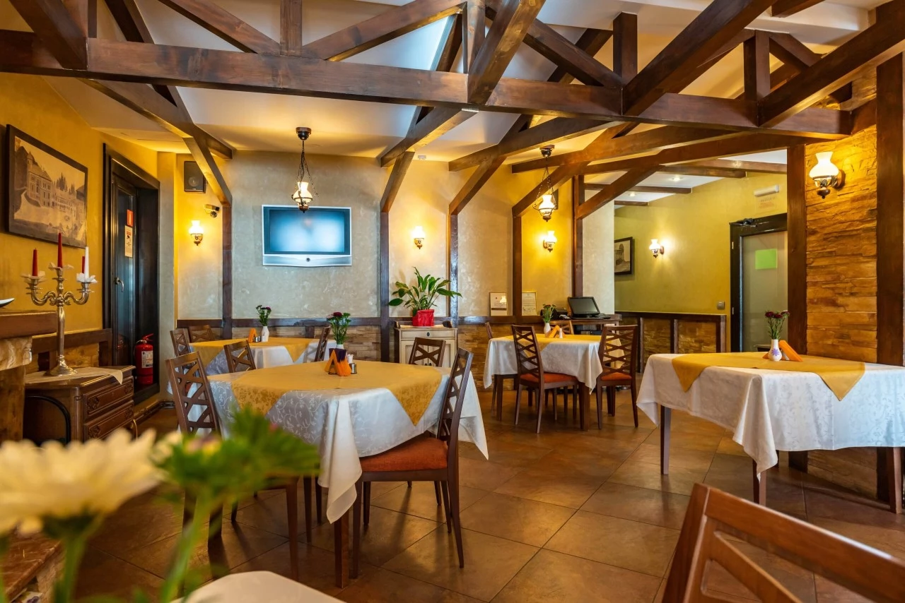 - În prezent, restaurantul de 40 de persoane oferă doar mic dejun tip bufet, care este inclus în prețul cazării.