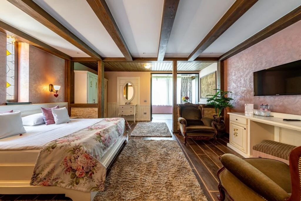 Pat matrimonial + canapea extensibila, aer condiționat, balcon, frigider, jacuzzi, mic dejun inclus, pat matrimonial, telefon, tv, uscător de par, vedere spre munte, WI-FI gratuit
