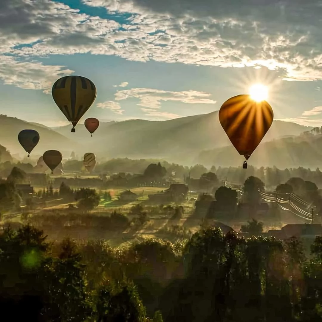 Pentru un zbor liber (organizat anual la sfarsitul lunii septembrie) cu balonul cu aer cald de unde puteti admira si mai bine muntii si dealurile invecinate.
