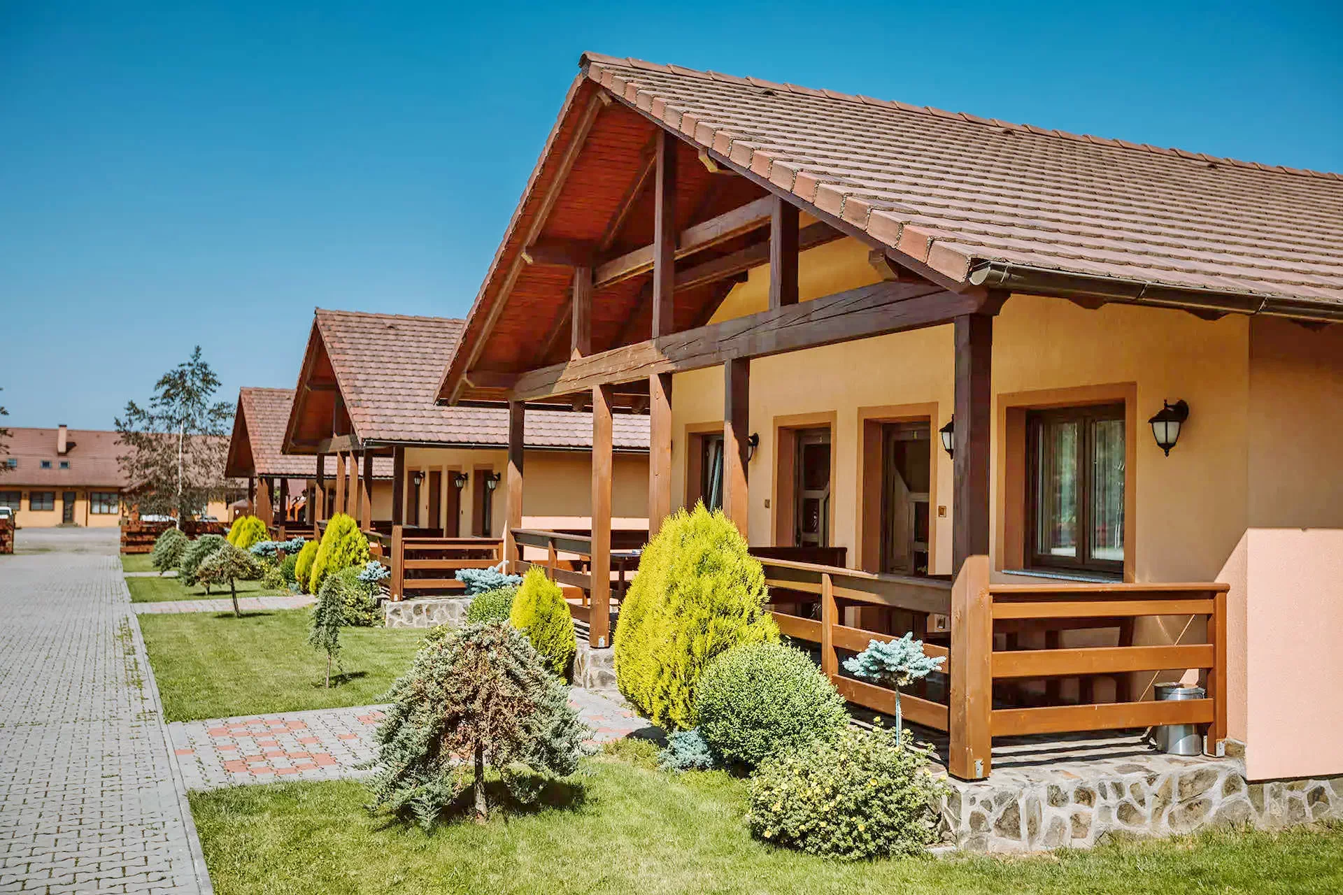 - 8 casute cu doua camere separate (4 pers./2 camere/casuta)