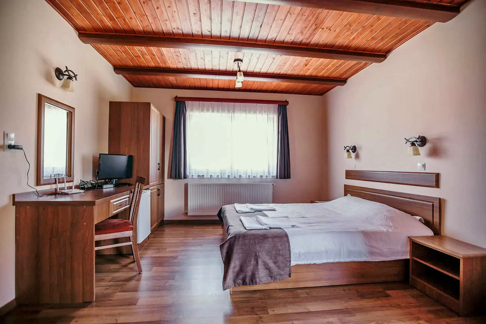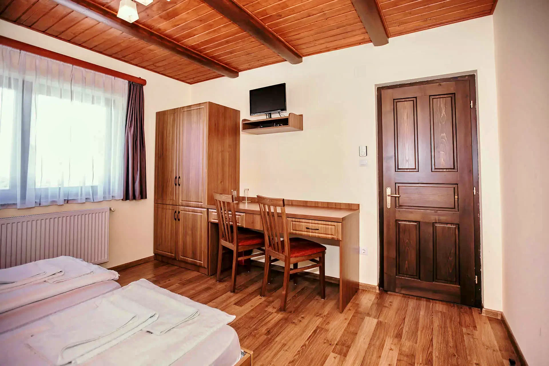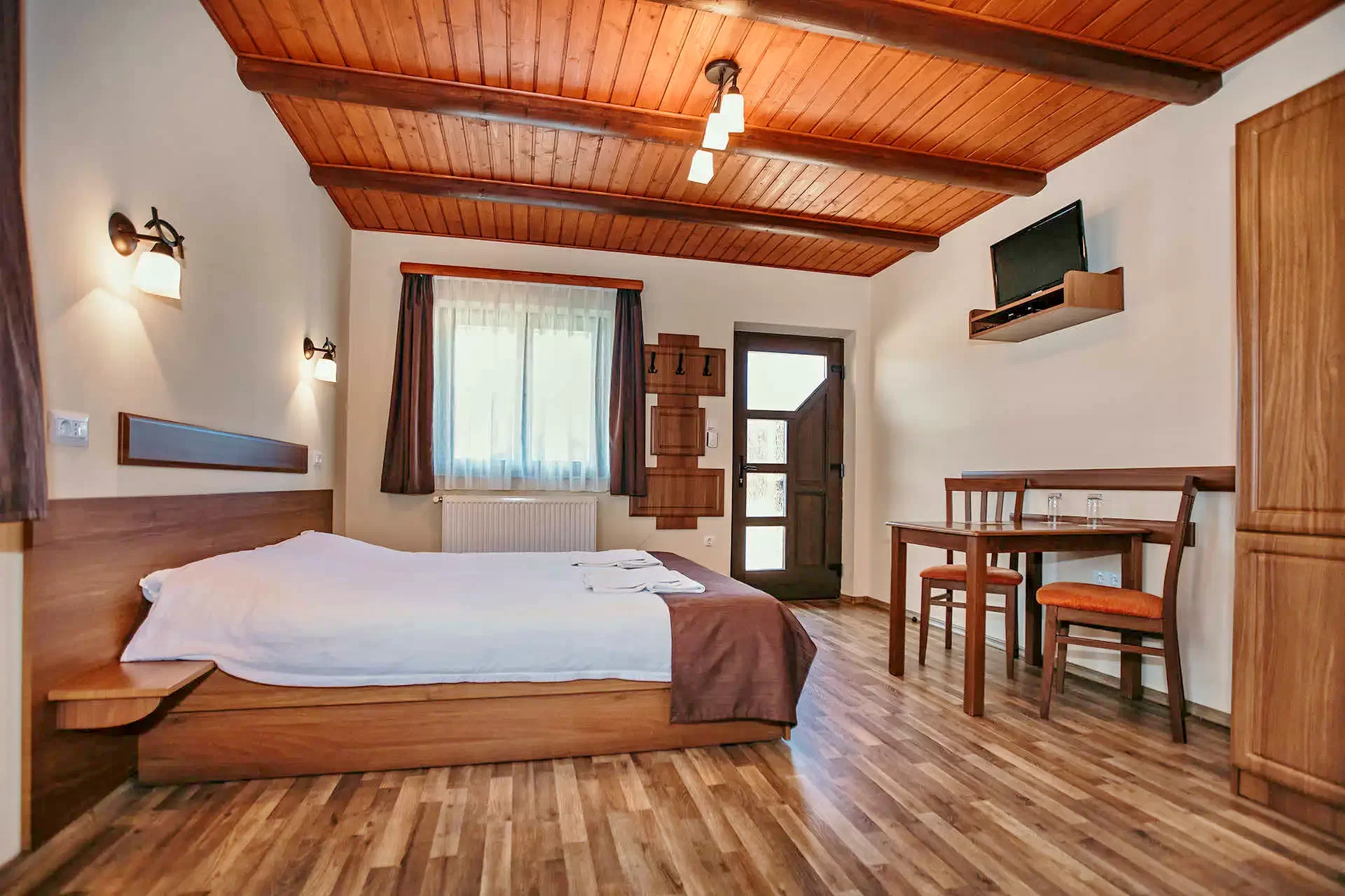 - Camerele amenajate exigent sunt dotate cu baie si terasa proprie, televizor,Wi-Fi, frigider. Camerele se pot solicita cu pat matrimonial iar la fiecare camera exista posibilitatea introducerii unui pat suplimentar.