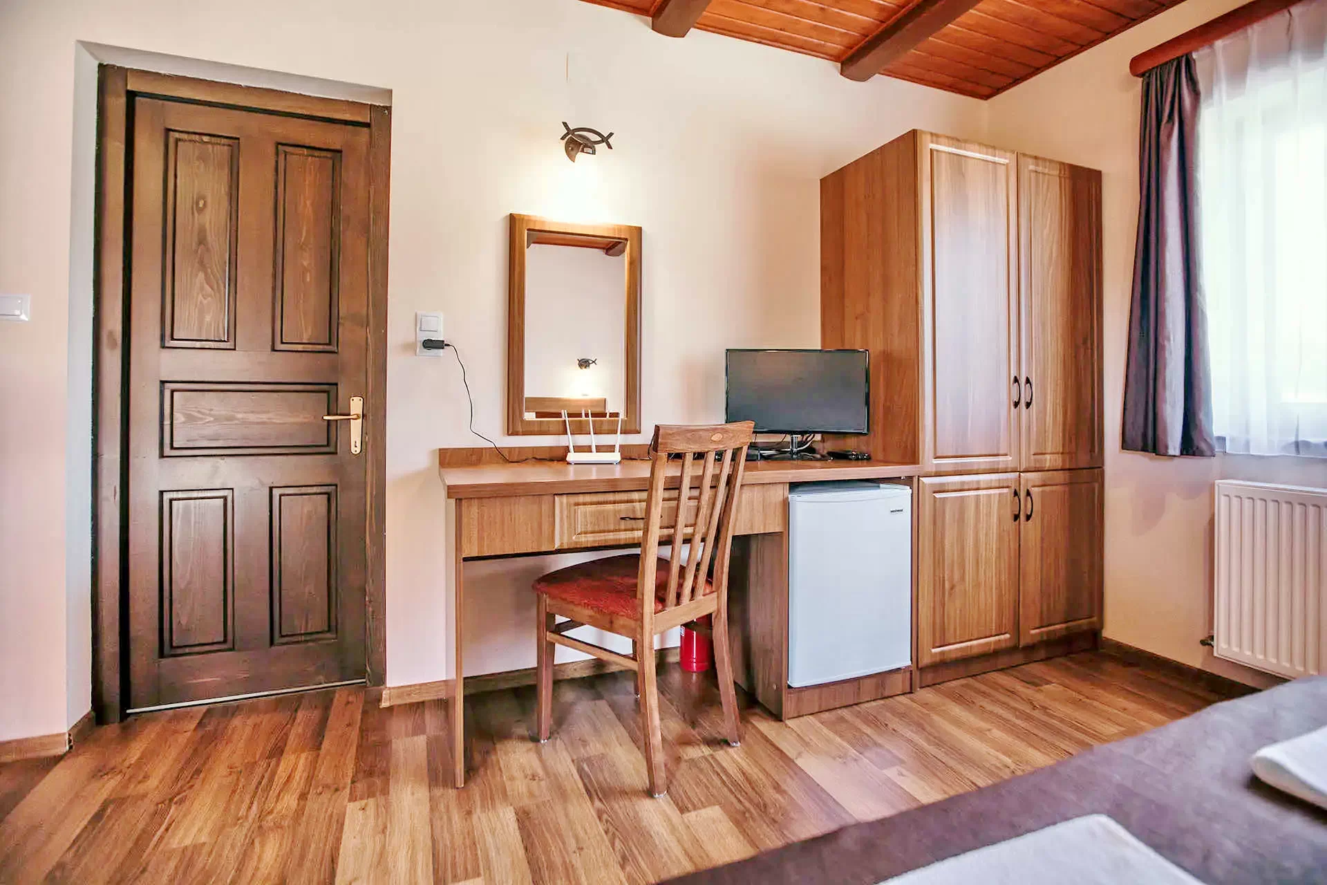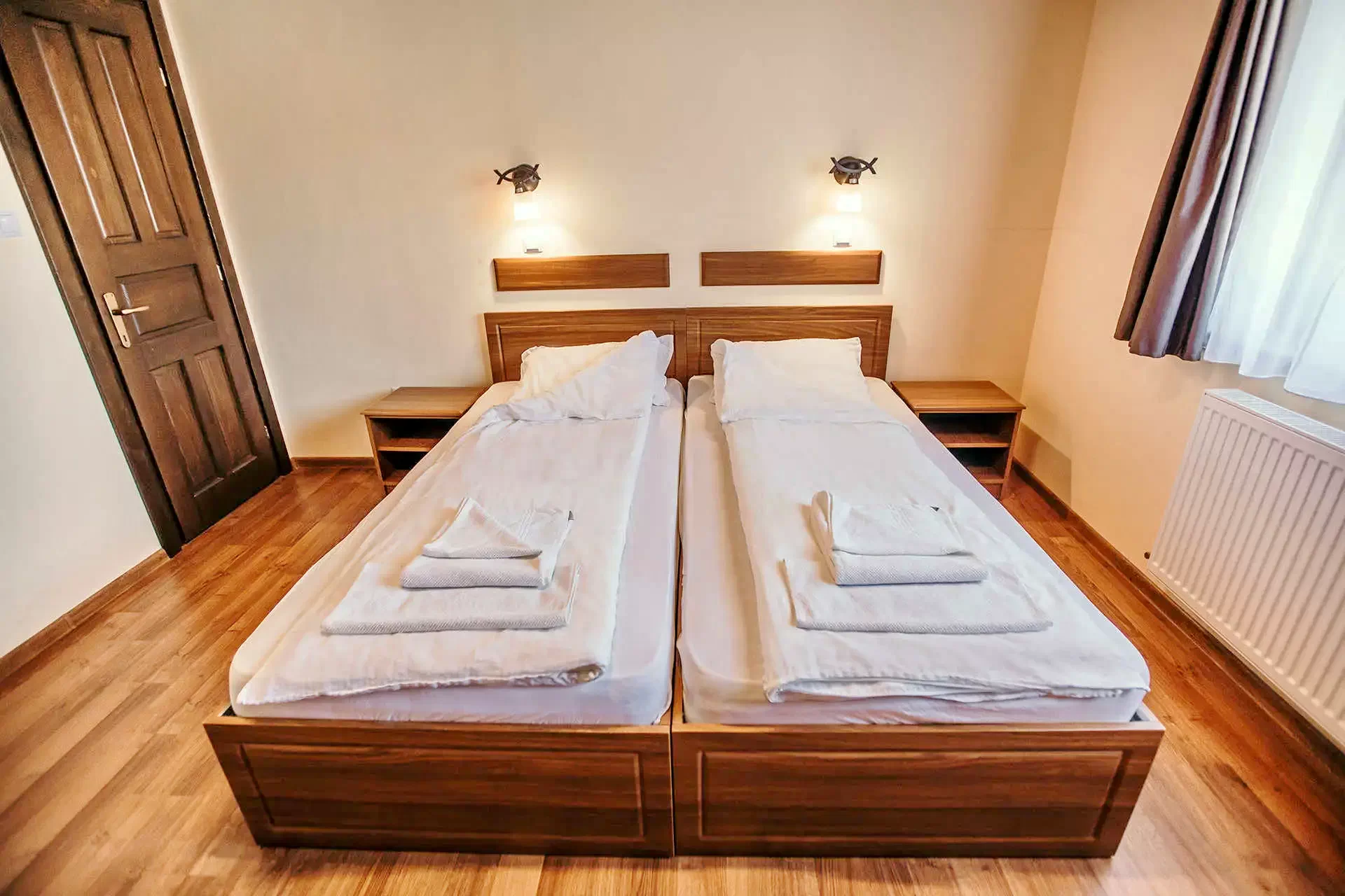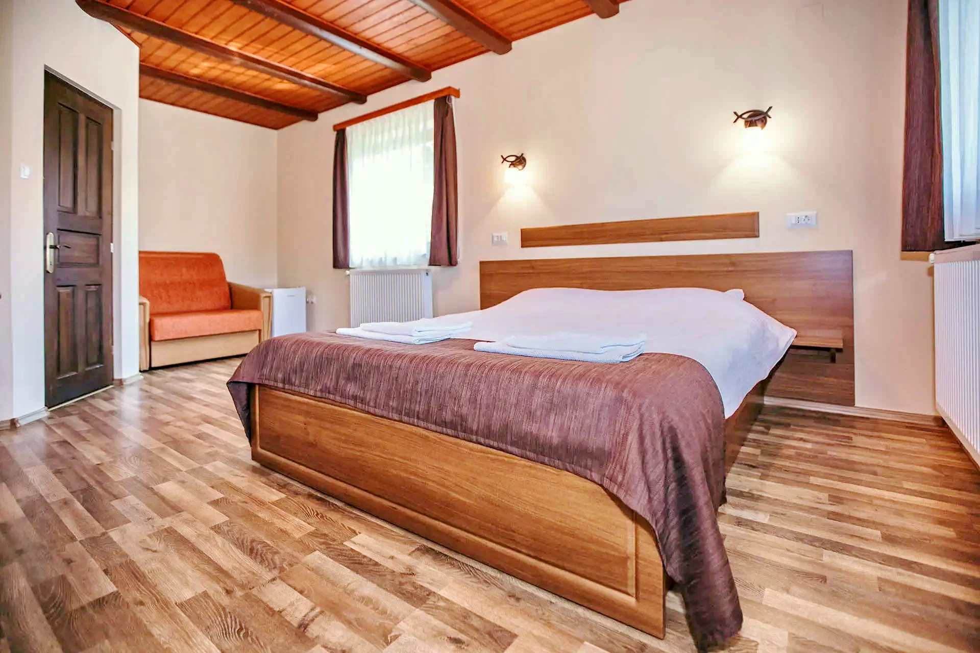 - Camerele amenajate exigent sunt dotate cu baie si terasa proprie, televizor,Wi-Fi, frigider. Camerele se pot solicita cu pat matrimonial iar la fiecare camera exista posibilitatea introducerii unui pat suplimentar.