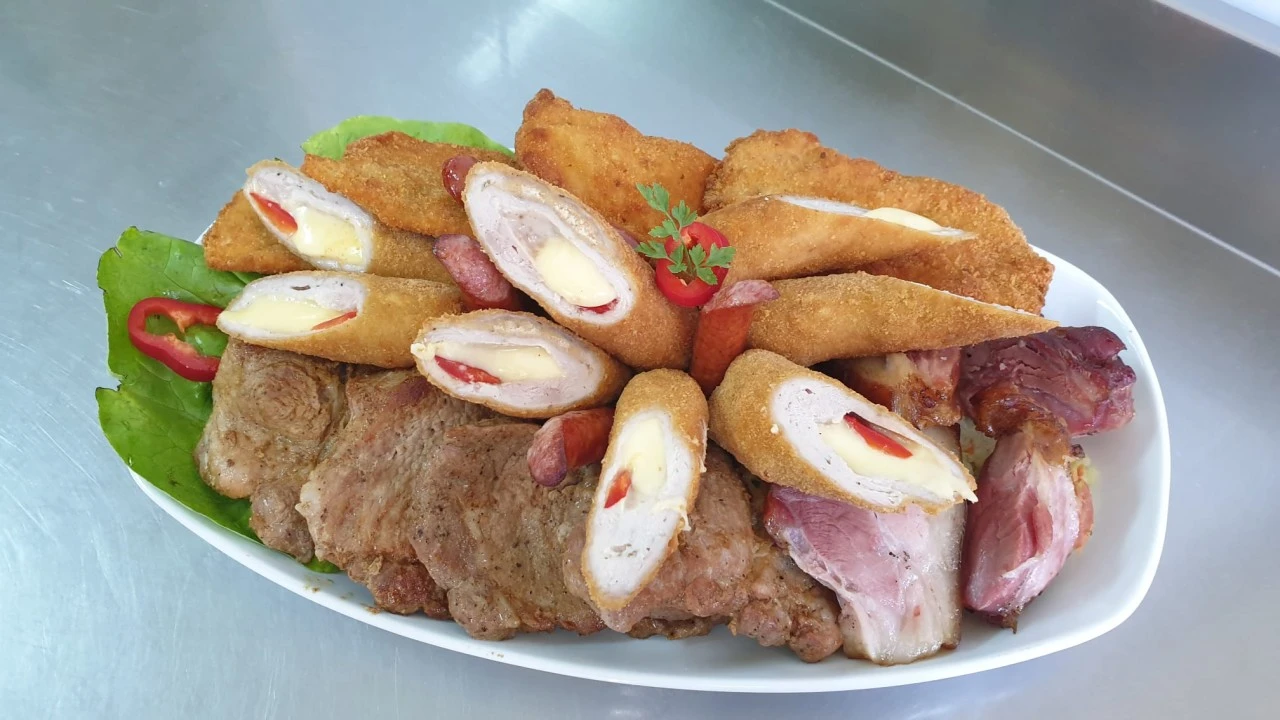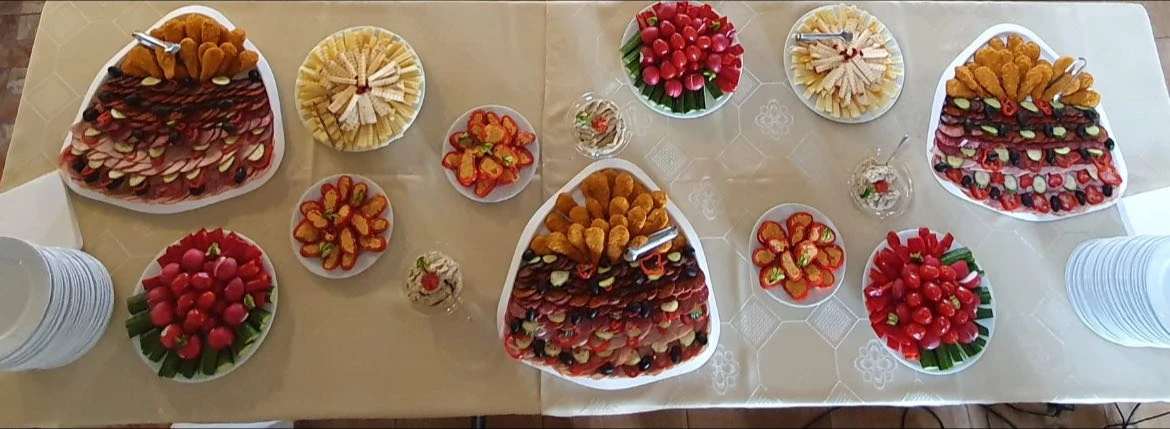 - Meniul include platouri reci delicioase, cu legume proaspete, cremă de vinete de casă, bucăți de piept de pui, selecții de brânzeturi și mezeluri, completate de pâine de casă, pentru a satisface toate gusturile și a transforma orice masă într-un moment special.