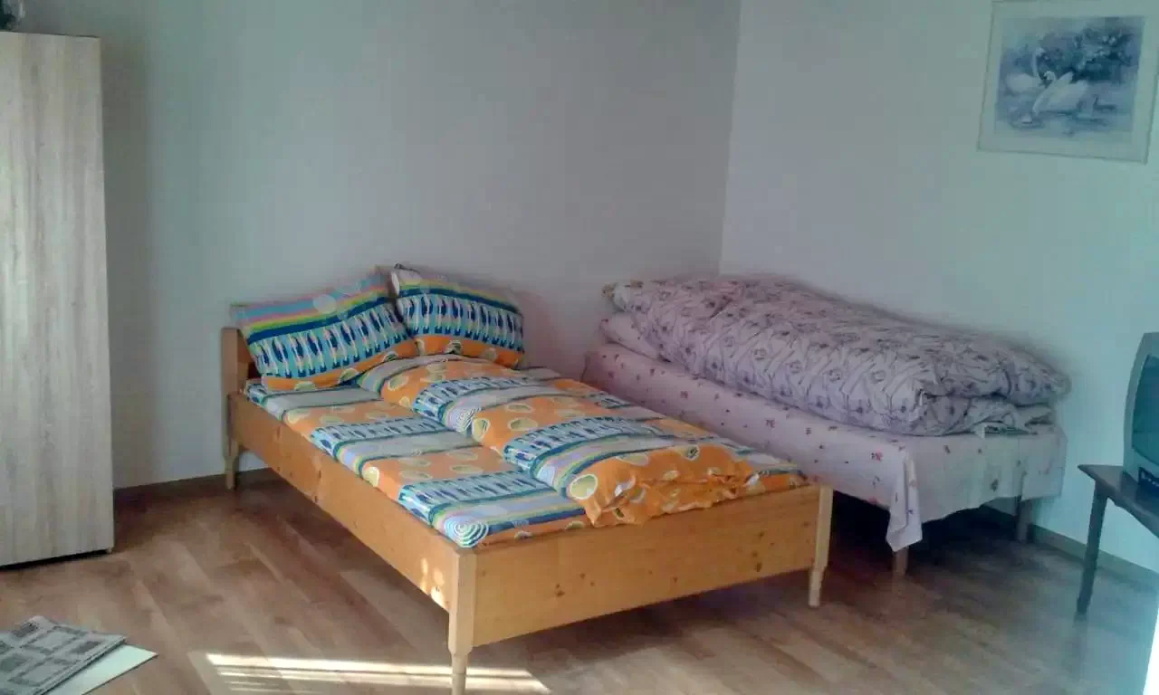 Cabana este compusa dintr-o casa de vacanta mica cu 6 locuri si un apartament, cu o camera, cu 4 locuri.