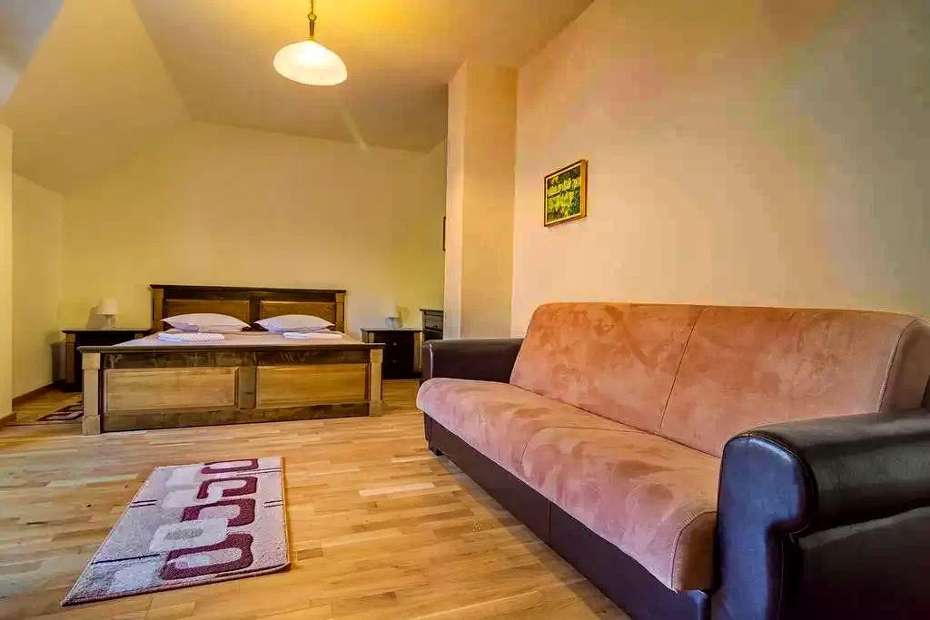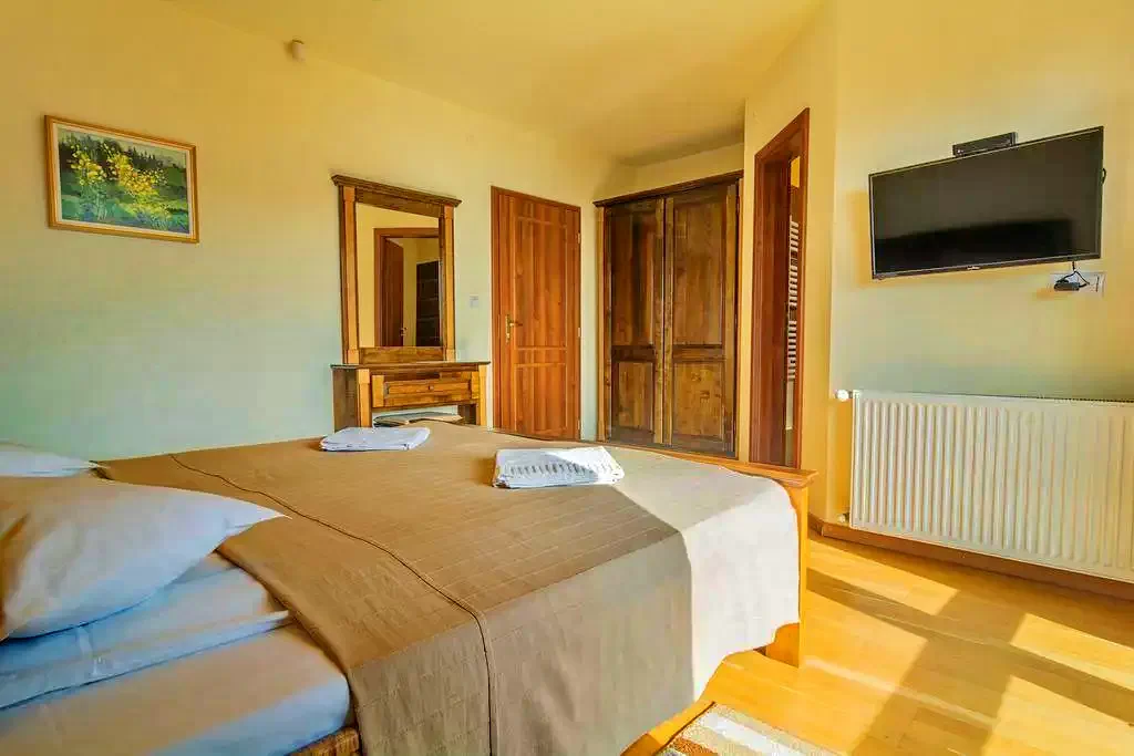 - 5 camere duble: 4 camere duble cu pat matrimonial; 1 camera 4 persoane 2 paturi + 1 canapea extensibila; 1 camera 4 persoane