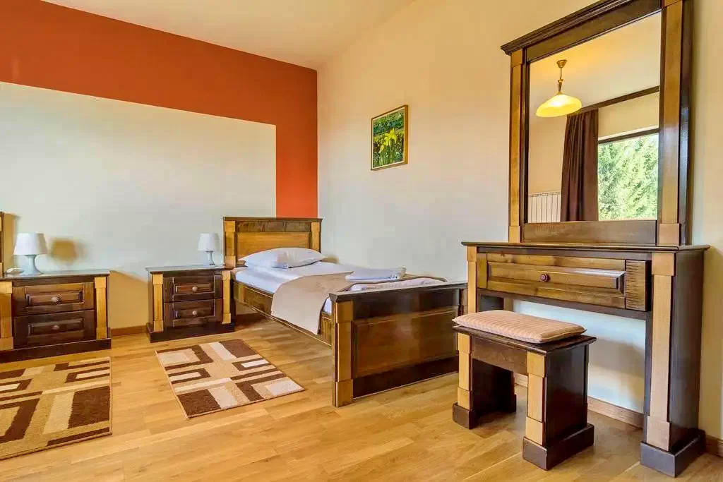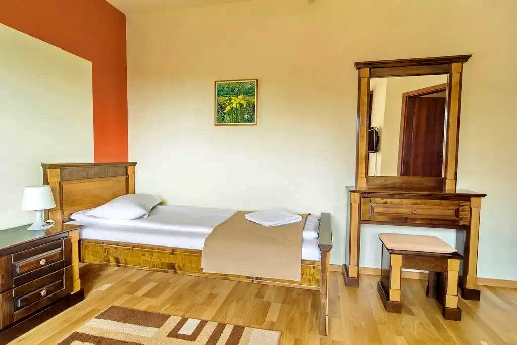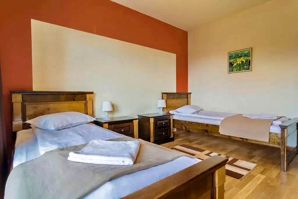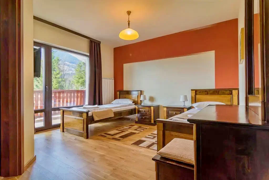 - 5 camere duble: 2 camere duble cu pat matrimonial; 3 camere duble twin, sauna