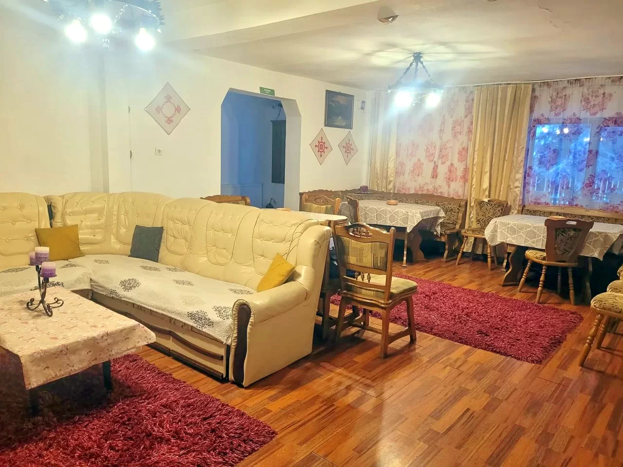 - La parterul pensiunii se afla bucataria si livingul unde va puteti destinde in fata semineului la un pahar de vin fiert.