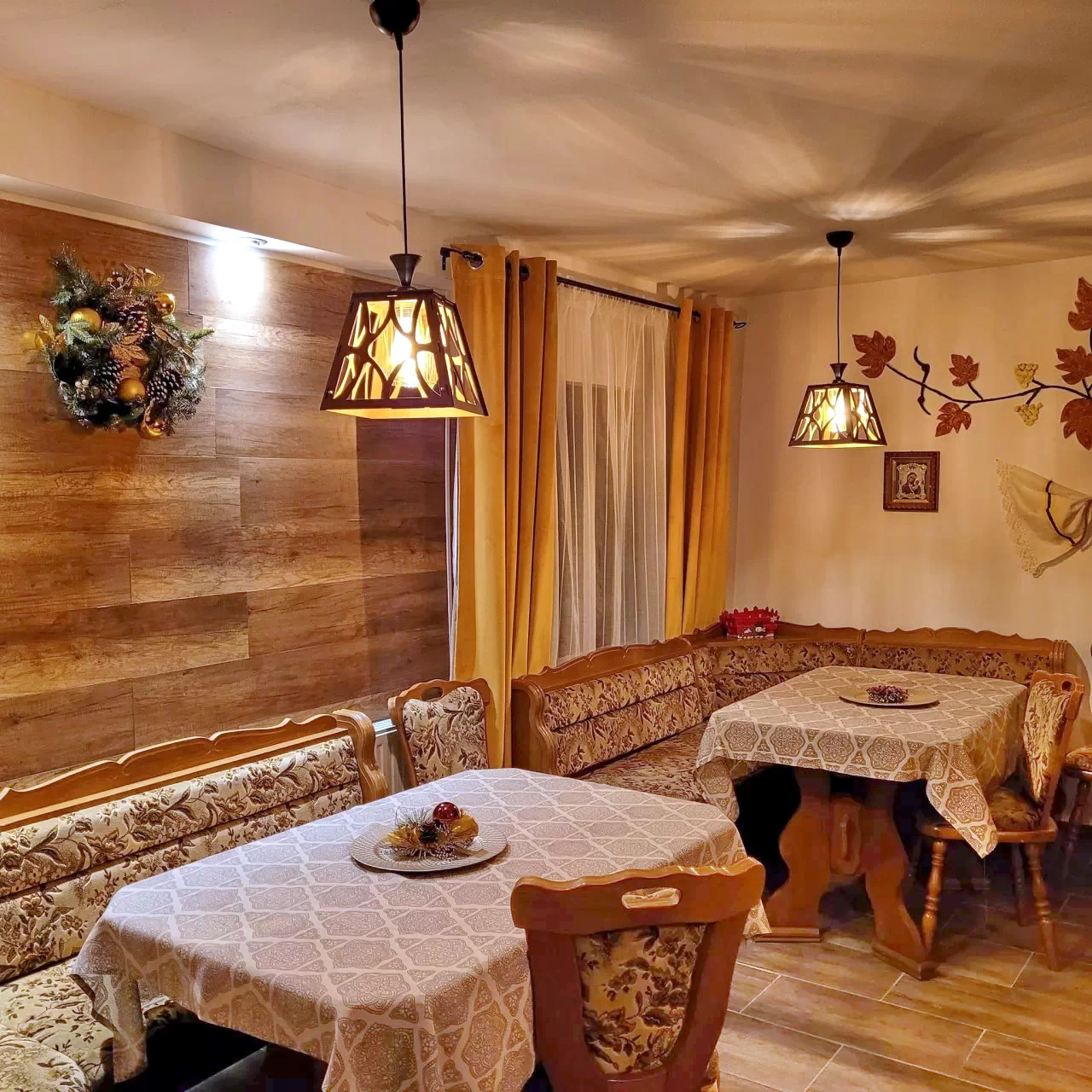 - Restaurantul pensiunii va asteapta cu specialitati traditionale romanesti si este locul ideal pentru petreceri, logodne, botezuri, nunti, capacitatea restaurantului fiind de aproximativ 80 de locuri.