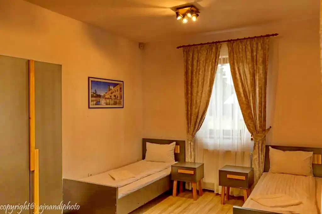 - Camerele sunt dispuse la parter și la etaj, toate fiind dotate cu baie privată, dulap, birou, prosoape, lenjerie, Wi-Fi și detector electronic de fum.