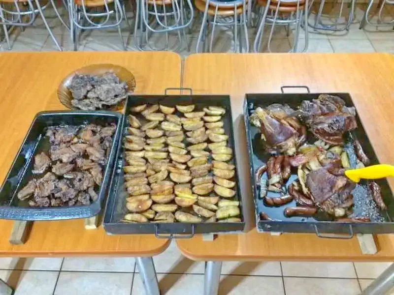 - Cina: 3 feluri (ciorba, fel principal, desert), palinca, vin