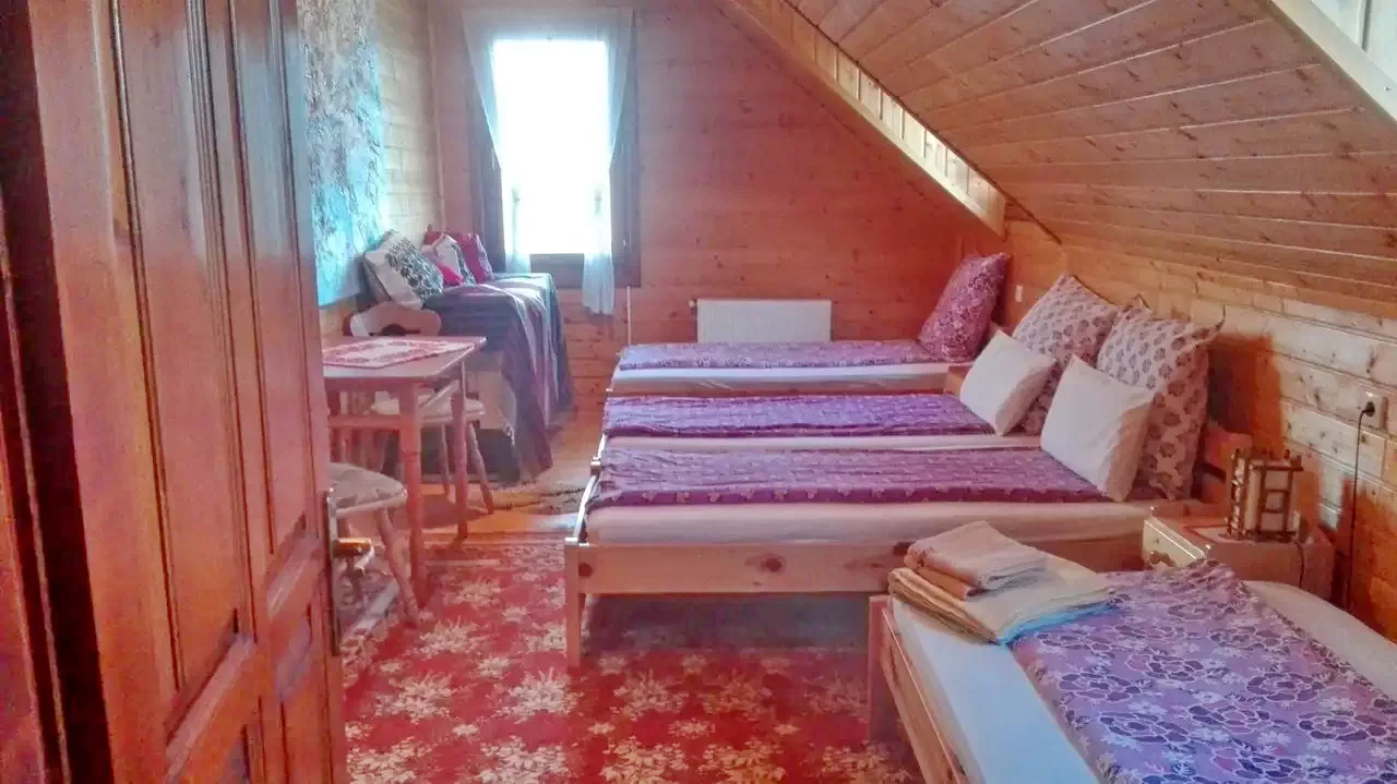 Camera 3: 1 pat dublu, 2 paturi simple (4 persoane), baie proprie.